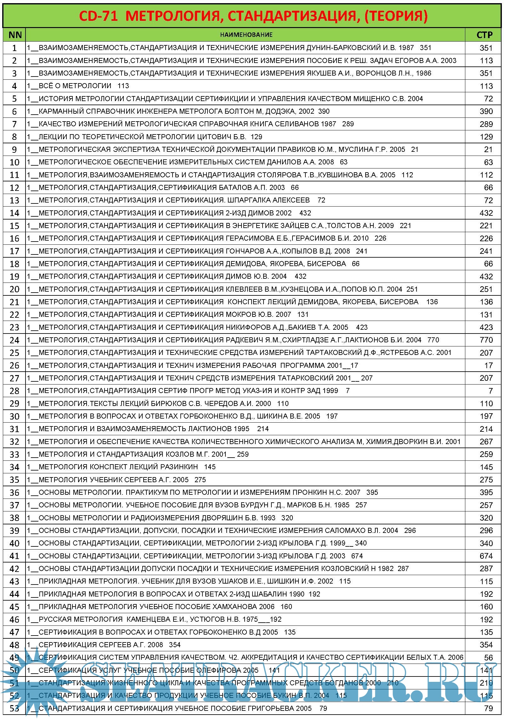 CD‐71 МЕТРОЛОГИЯ, СТАНДАРТИЗАЦИЯ, (ТЕОРИЯ)