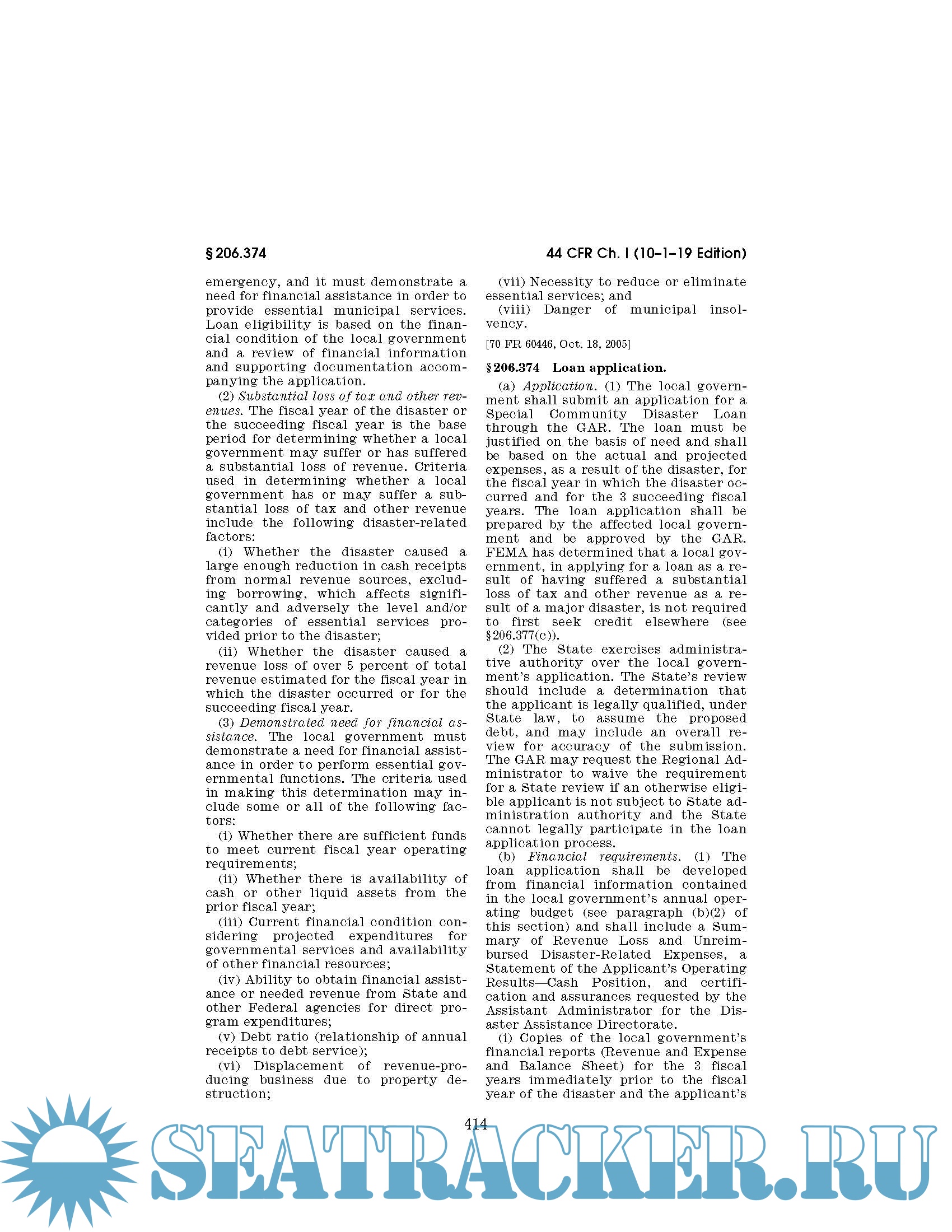 Code of Federal Regulations CFR Title 44 - Emergency Management and Assistance Parts 1 - 499. October 1, 2019
