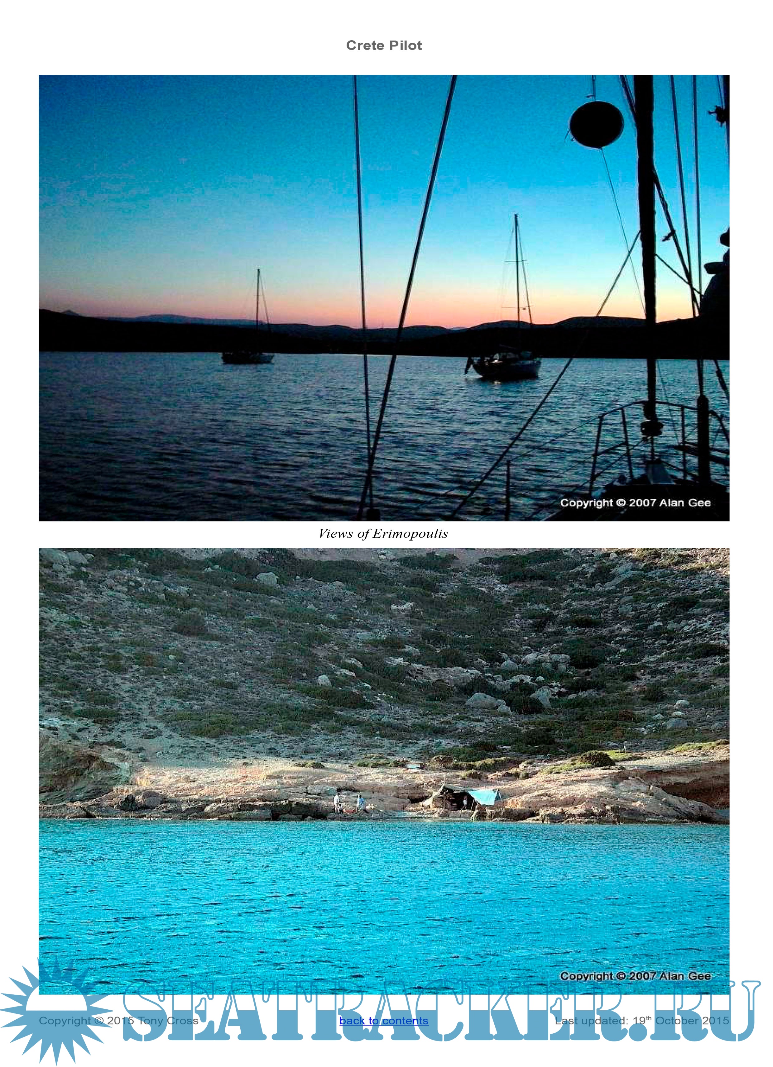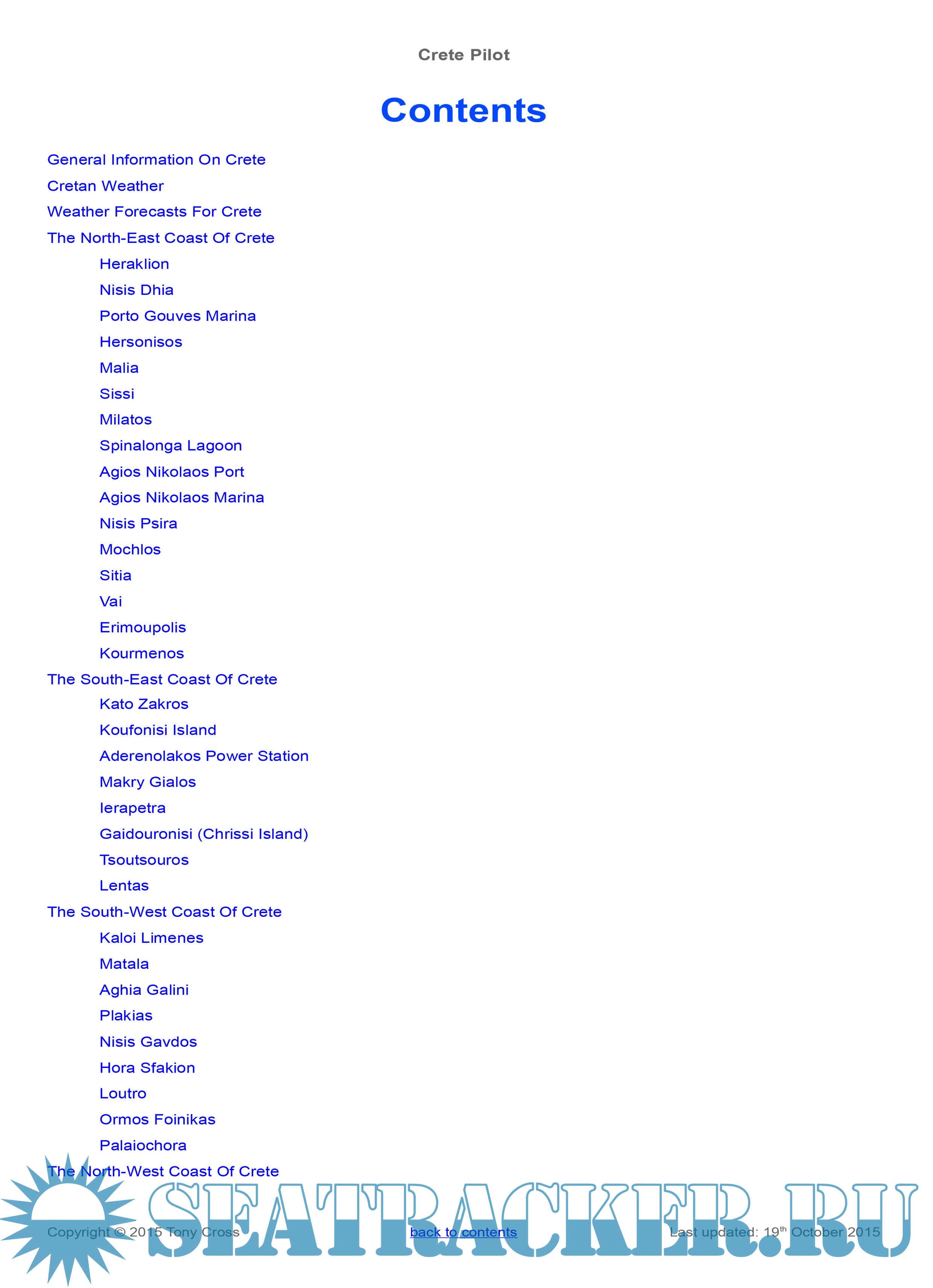 Description: This yachtsman's pilot for the Greek island of Crete was begun originally as a set of cruising notes following our trip around Crete in October and November 2007 in our 45ft sailing yacht “Little Roundtop”. Since that date the cruising notes have been gradually updated and added to as more ports and anchorages were visited, either by ourselves or by trusted close friends, and in 2010 it was felt that they were complete enough to be useful as a yachting pilot for Crete. The information in here is regularly updated, either through our own visits or by those of trusted friends, and the information in here is as up-to-date and as complete as we can make it.