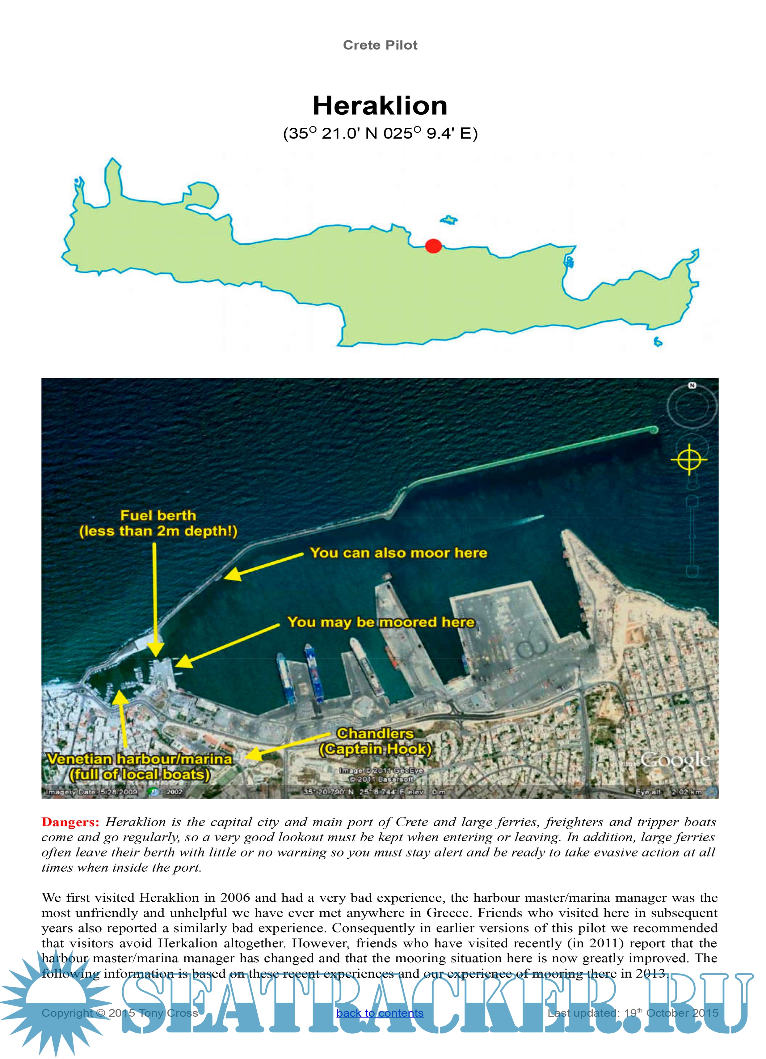 Year: 2015 Language: english Author: Tony Cross Genre: Guide Publisher: Tony Cross (himself) Format: PDF Quality: eBook Pages count: 138 Description: This yachtsman's pilot for the Greek island of Crete was begun originally as a set of cruising notes following our trip around Crete in October and November 2007 in our 45ft sailing yacht “Little Roundtop”. Since that date the cruising notes have been gradually updated and added to as more ports and anchorages were visited, either by ourselves or by trusted close friends, and in 2010 it was felt that they were complete enough to be useful as a yachting pilot for Crete. The information in here is regularly updated, either through our own visits or by those of trusted friends, and the information in here is as up-to-date and as complete as we can make it.