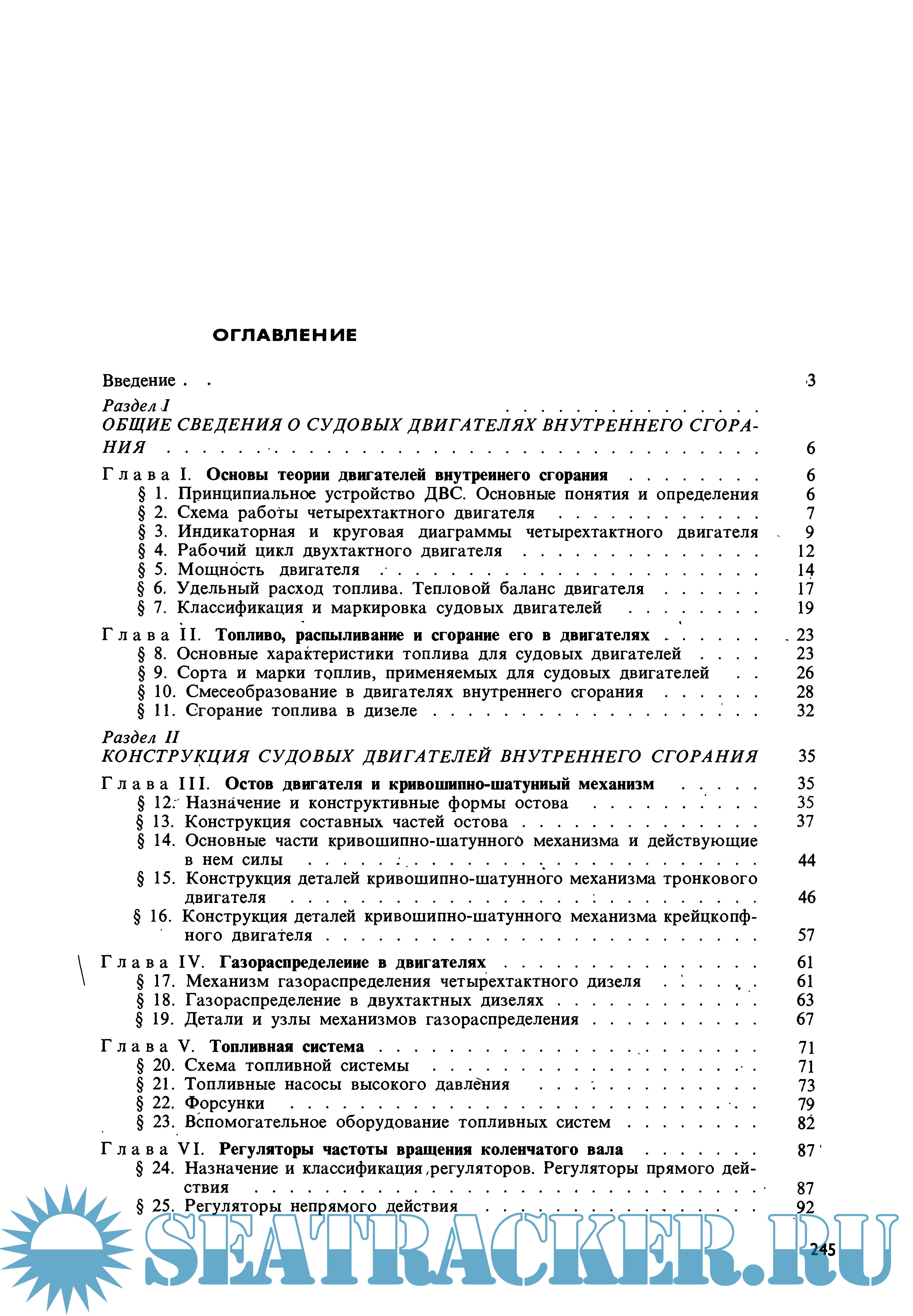 Описание: В книге изложены основы теории и принципы действия двигателей внутреннего сгорания. Описаны конструкция и эксплуатация двигателей, устанавливаемых на ботах, сейнерах, траулерах, рефрижераторах, плавбазах и других судах флота рыбной промышленности. Дана характеристика топлива, освещены вопросы его сгорания. Рассмотрены типы энергетических установок промысловых судов, устройство судового валопровода и движители.
