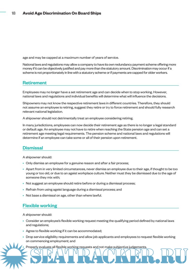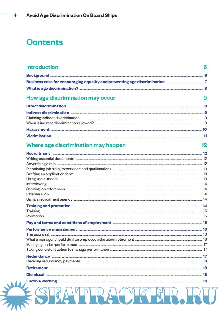 Description: This guidance has been produced to help to eliminate age discrimination and to improve the working environment on board ships. Age discrimination (ageism) is a potential form of unfair treatment at workgiven that the age gap between employees in the workplace can now be as much as 50 years.