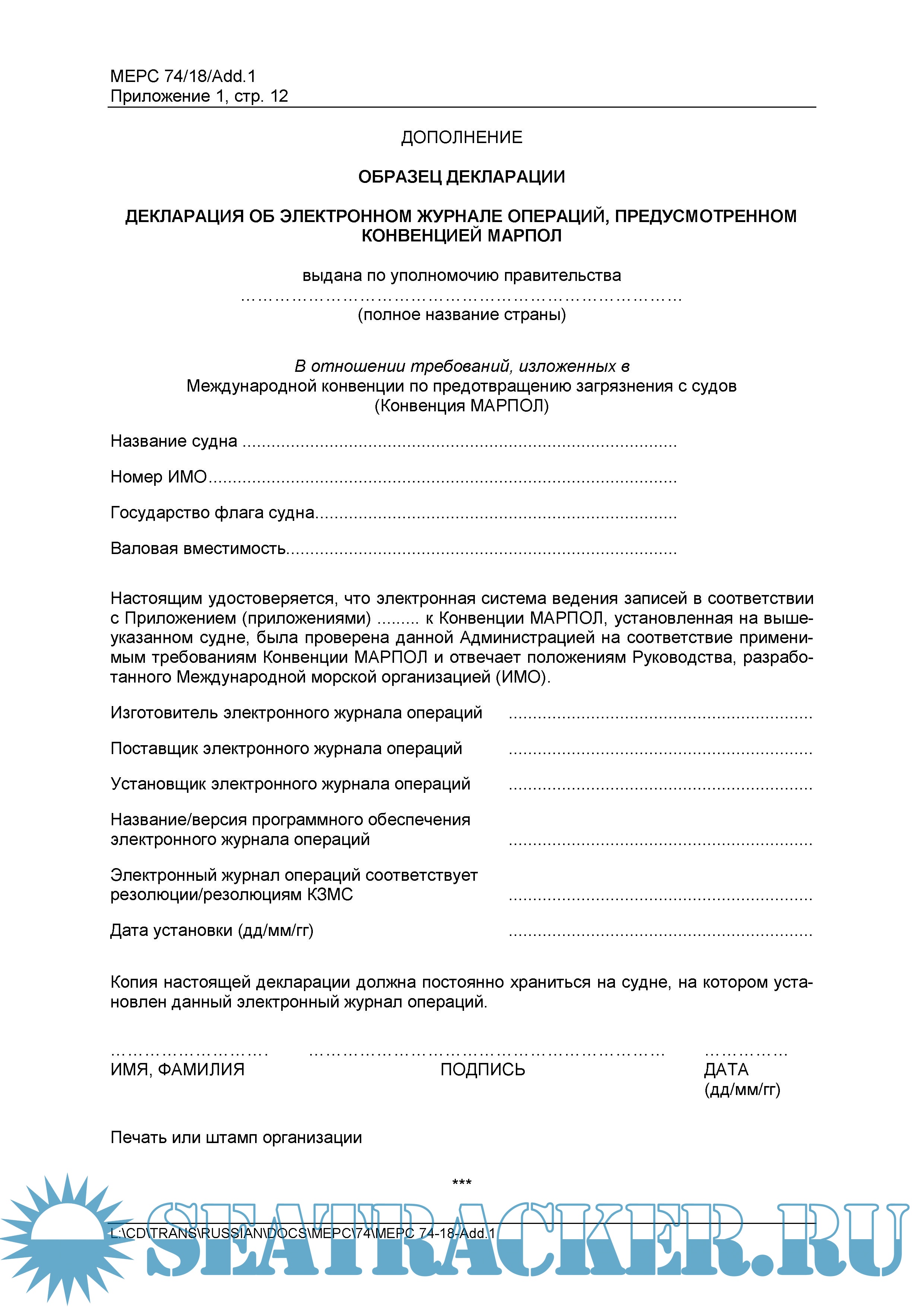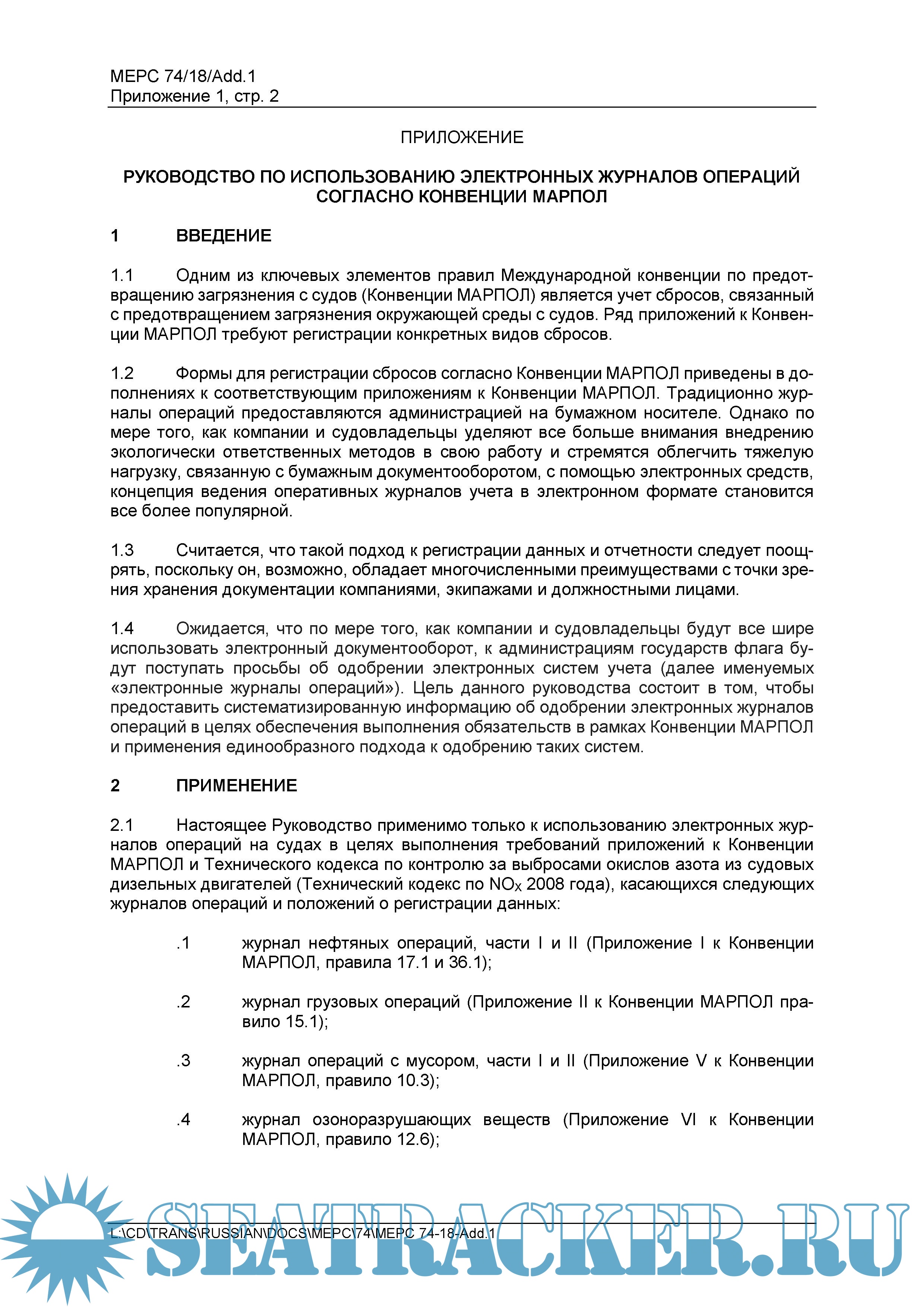 Руководство по использованию электронных журналов операций согласно Конвенции МАРПОЛ (Резолюция MEPC.312(74))