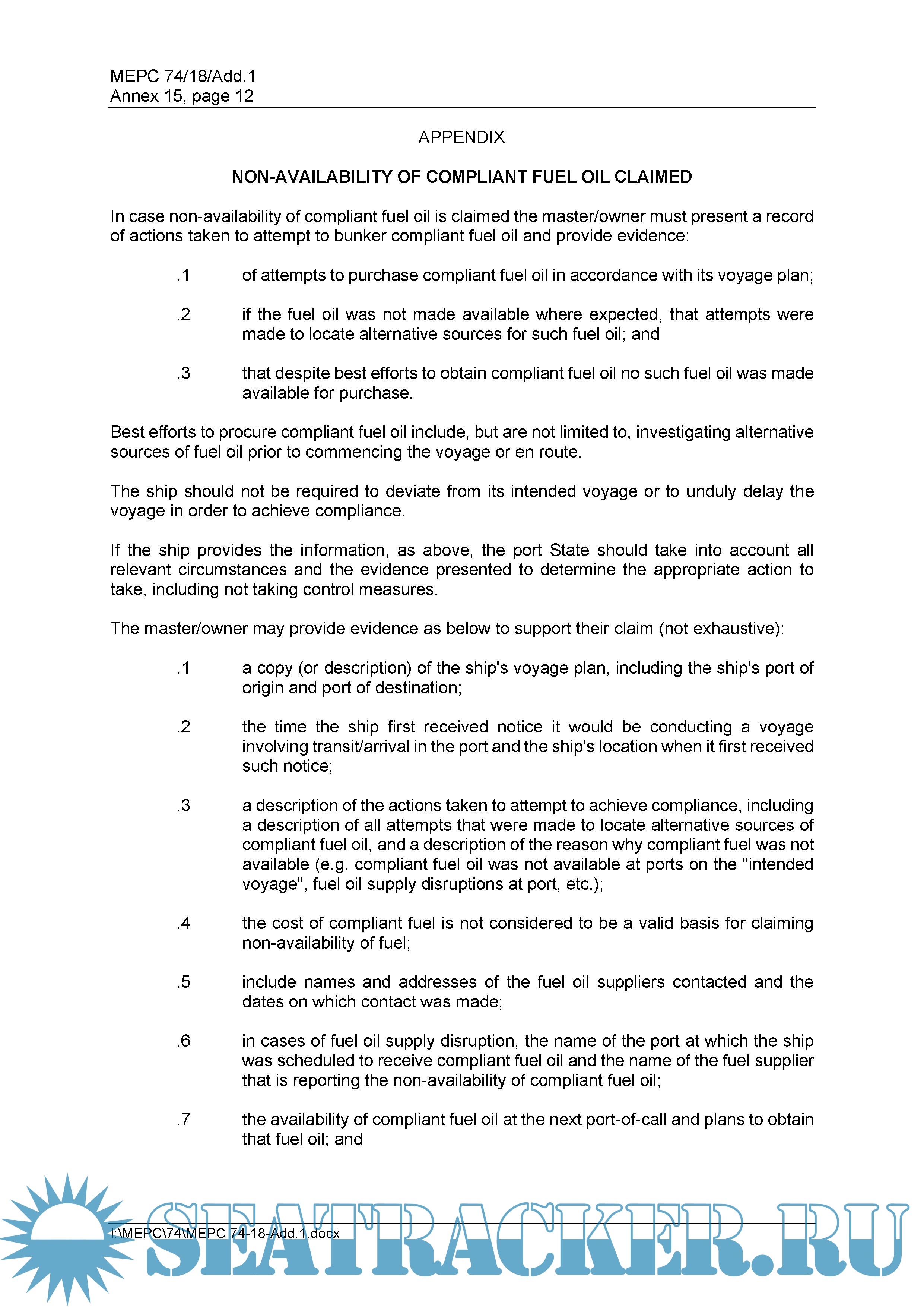 Appendix. NON-AVAILABILITY OF COMPLIANT FUEL OIL CLAIMED