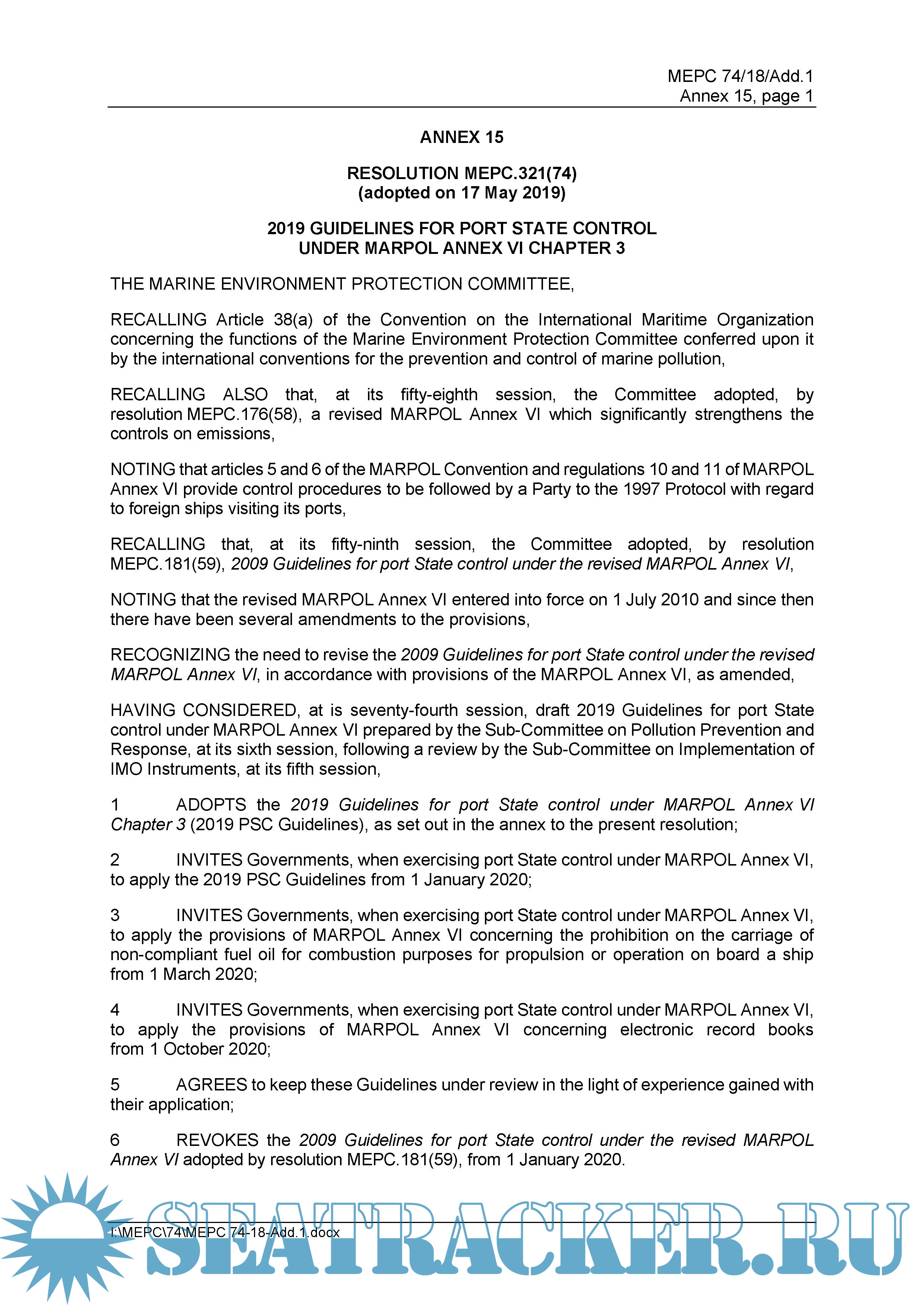 6 !!! REVOKES !!! the 2009 Guidelines for port State control under the revised MARPOL Annex VI adopted by resolution MEPC.181(59) (see https://seatracker.club/viewtopic.php?t=1181), from 1 January 2020