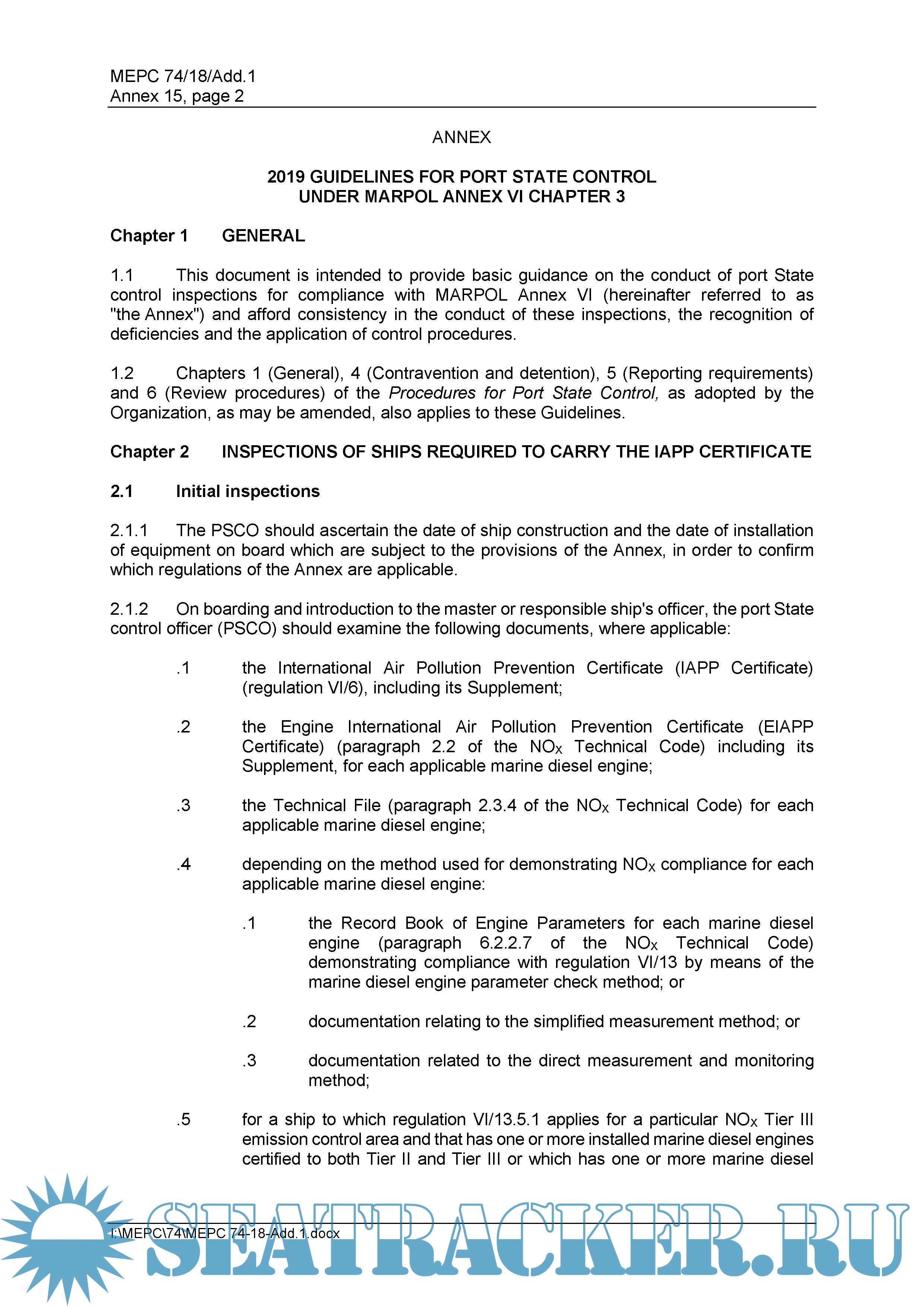 Chapter 2 INSPECTIONS OF SHIPS REQUIRED TO CARRY THE IAPP CERTIFICATE