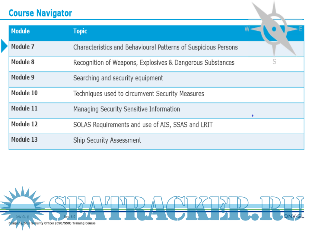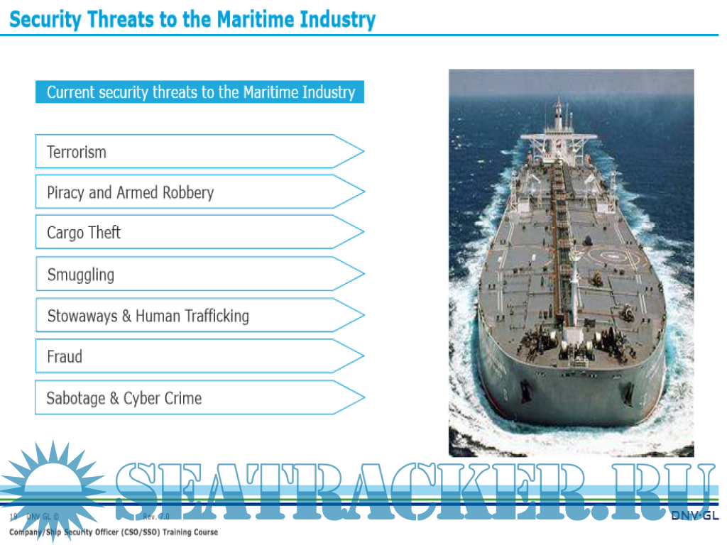 Year: 2019 Language: english Author: DNV-GL Maritime Academy Genre: Training courses Publisher: DNV-GL Maritime Academy Edition: Rev 7.0 Format: PDF Quality: eBook Pages count: 310 Description: The course provides participants with the knowledge, understanding, and proficiencies as required by STCW 78, as amended and the ISPS Code to undertake the tasks, duties, and responsibilities as Company Security Officer (CSO) or Ship Security Officer (SSO). Practical case studies, exercises, and videos are used to illustrate possible measures to comply with the maritime security requirements as laid down in the ISPS Code. Achievement of competencies is assessed by means of a final test. Company Security Officer (CSO) in accordance with the standard of competence as outlined in the Guidelines on Training and Certification for Company Security Officers issued as Annex of MSC/Circ.1154 and the IMO Model Course 3.20; Ship Security Officer (SSO) in accordance with the Mandatory Minimum Requirements for the Issue of Certificates of Proficiency for Ship Security Officers, set out in section A-VI/5, paragraphs 1 to 4 of the STCW 78, as amended and the IMO Model Course 3.19. Note: Our course is accepted by relevant flag states but not by the British Maritime and Coastguard Agency (MCA). For MCA approved SSO or CSO training, please contact your closest Maritime Academy office. The Training Certificate is recognized by major flag States as a precondition for the issuance of a Certificate of Proficiency (CoP) as Ship Security Officer Additional info: Objectives Training for qualification as Company Security Officer (CSO) and Ship Security Officer (SSO)
