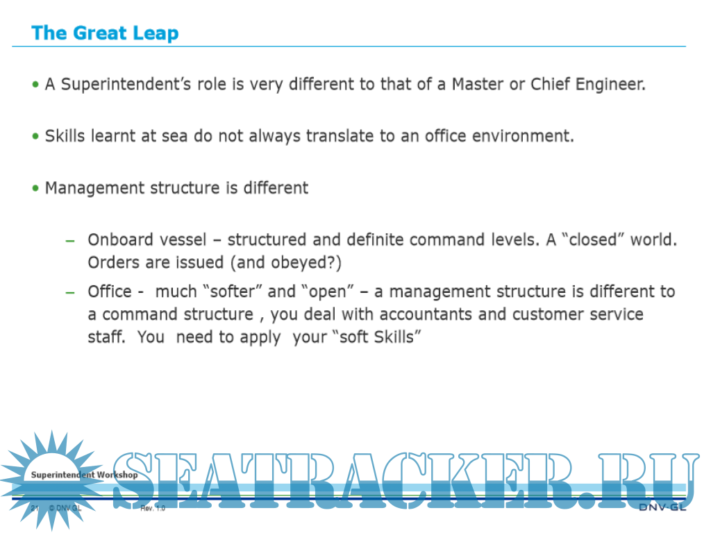 You will have a good start when changing the side from ship to shore and you will be a competent member of the team.
