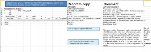 Year: 2018 Language: english Author: Tom Alex Genre: Other Format: XLS Quality: Unknown Pages count: 5 Description: This is a program I made to make AMVER reporting easier. Just export the route from ECDIS into csv fromat , paste it in excel , add a few necessary details and press the button. Thats all you have to do. I made it because I have seen second mates spending a lot of time for making AMVER report. PS : I know its not the best GUI but am limited in my skills on making good GUI . If anybody would like to modify the program , feel free to do so