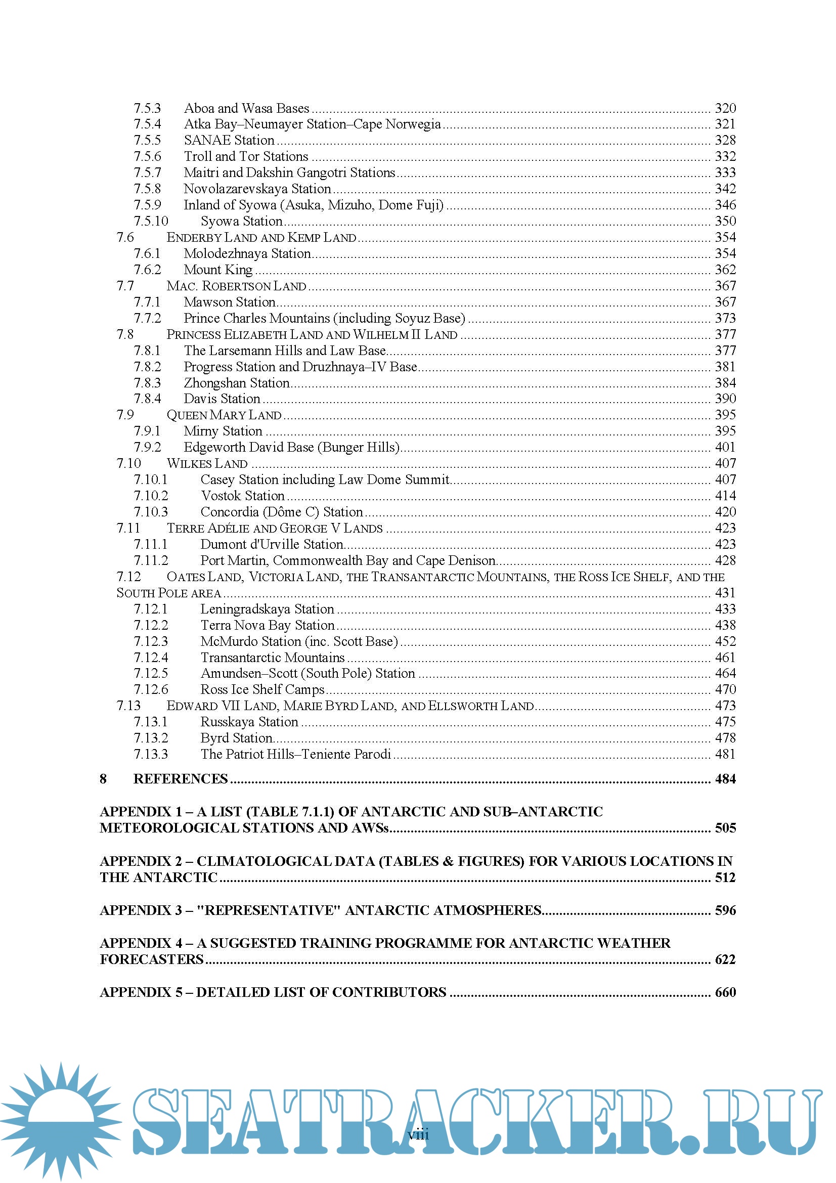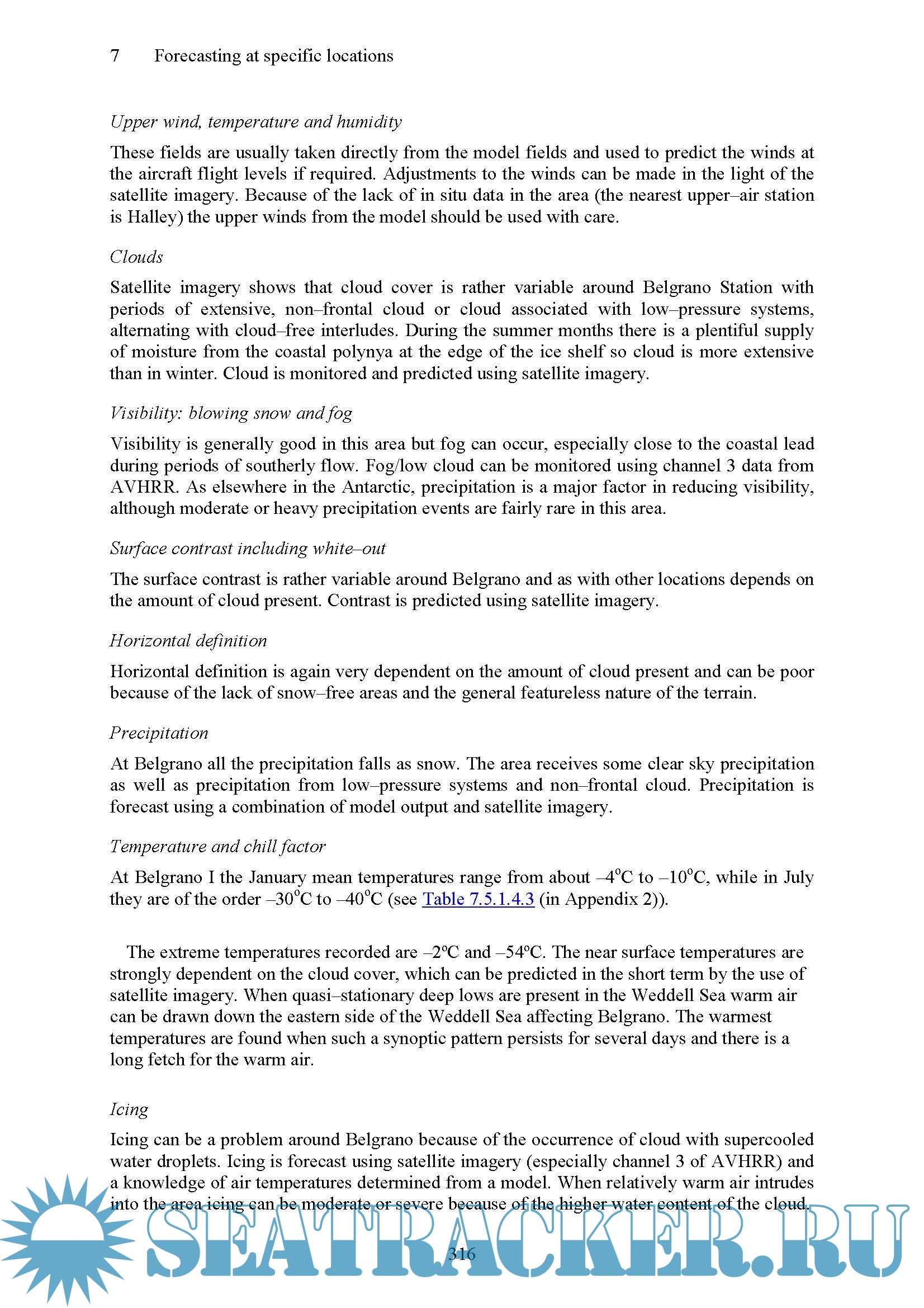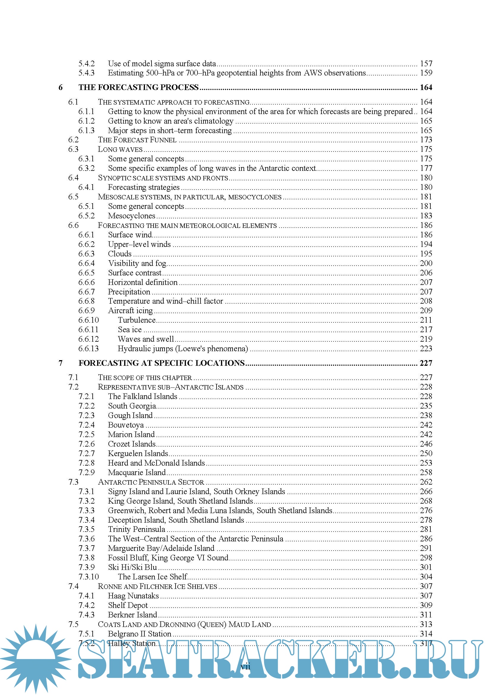 The second part of the handbook is concerned with the forecasting techniques used for particular sectors on the continent and on the various stations. For each location we provide information on topography and the local environment, operational requirements and activities relevant to the forecasting process, data sources and services provided and then deal with important weather phenomena and forecasting techniques used at the location. We cover prediction of surface wind and the pressure field, upper wind, temperature and humidity, clouds, visibility and fog, horizontal definition, precipitation, temperature and chill factor, icing, turbulence, hydraulic jumps, sea ice and wind waves and swell.