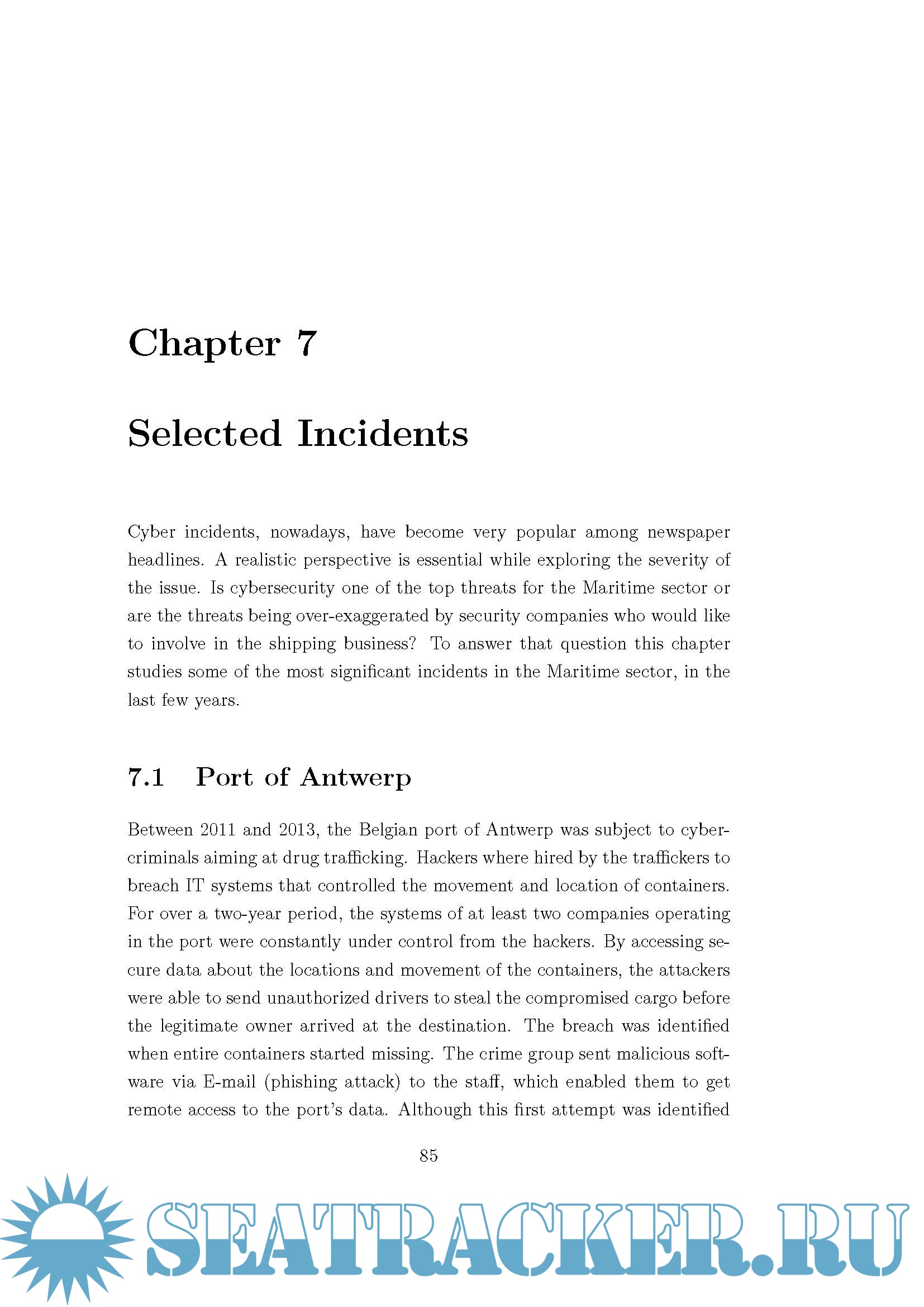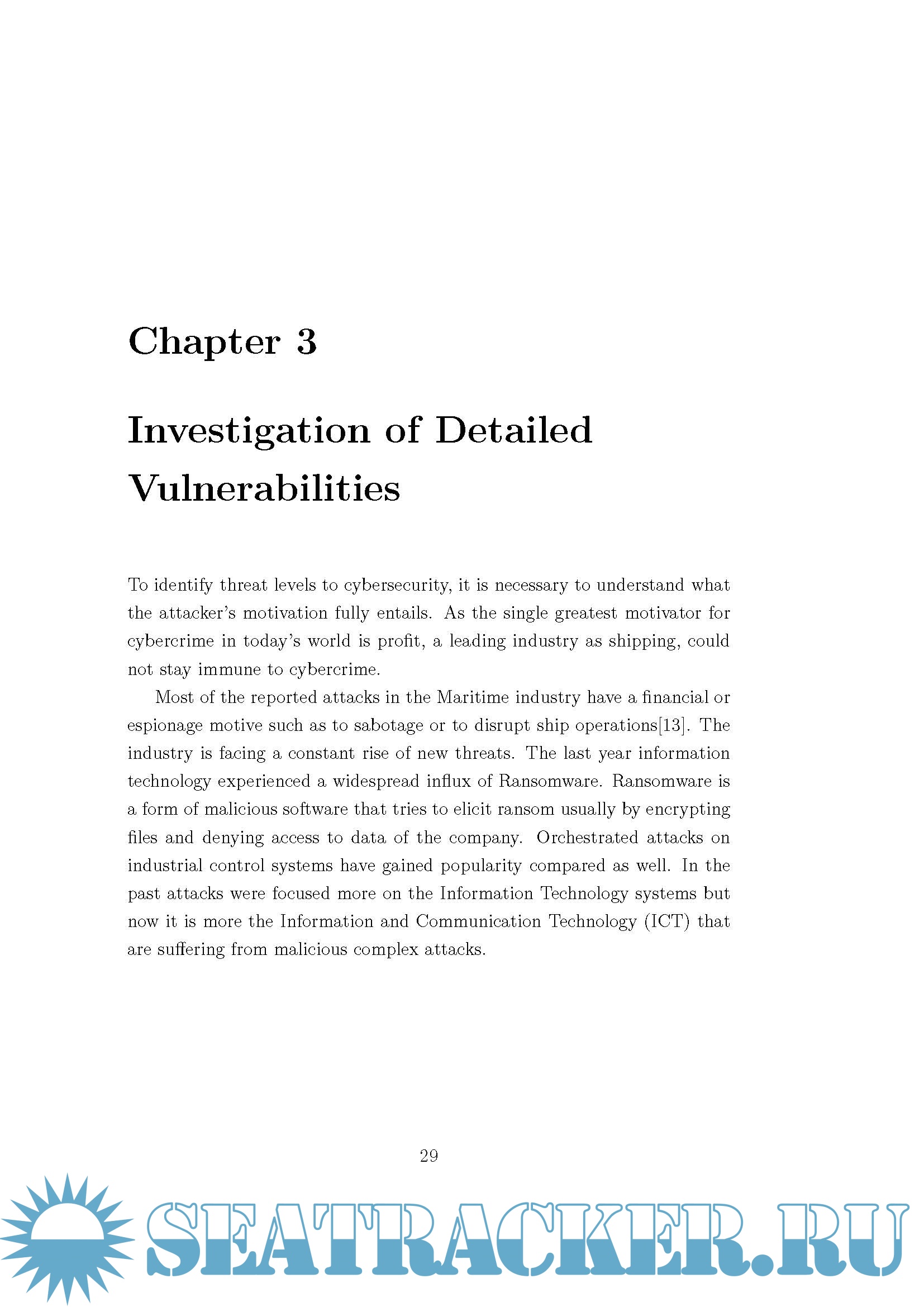 Year: 2018 Language: english Author: Sotiria Lagouvardou Genre: Research papers Publisher: Technical University of Denmark Format: PDF Quality: eBook Pages count: 120 Description: Across the global maritime community, vessels, ports, and facilities are already highly dependent on cyber systems. The Internet of things, the blockchain technology, electronic certificates, 3-D spare parts printing and many more innovations could change the face of the global shipping industry, enabling smart operations, e-navigation and even automated and unmanned ships. However, these developments come with a cost. The increased digitalization may prove to be beneficial to the industry in terms of productivity, efficiency and performance optimization but also, impose serious threats from the consistent connection of a ship with the cyber world. This is due to the ever-growing number of illegitimate parties that stand to gain from manipulation stolen data of the industry’s on-board and onshore systems. The potential impact of such malicious action can have significant consequences for personnel on board and on shore, as well as, on the environment. Systems onboard vessels are separated into two main categories, each of them with its own vulnerabilities and potential consequences, that defines the approach they need to confrontation and tolerance of the cyber risk. By analysing the systems in more detail, this thesis identifies the imposed threats that render the ship vulnerable to cyber threats. A detailed framework for mitigating cyber risk is proposed and a simulation of an attack is created in order to evaluate the ease of access and the response performance in such a scenario.