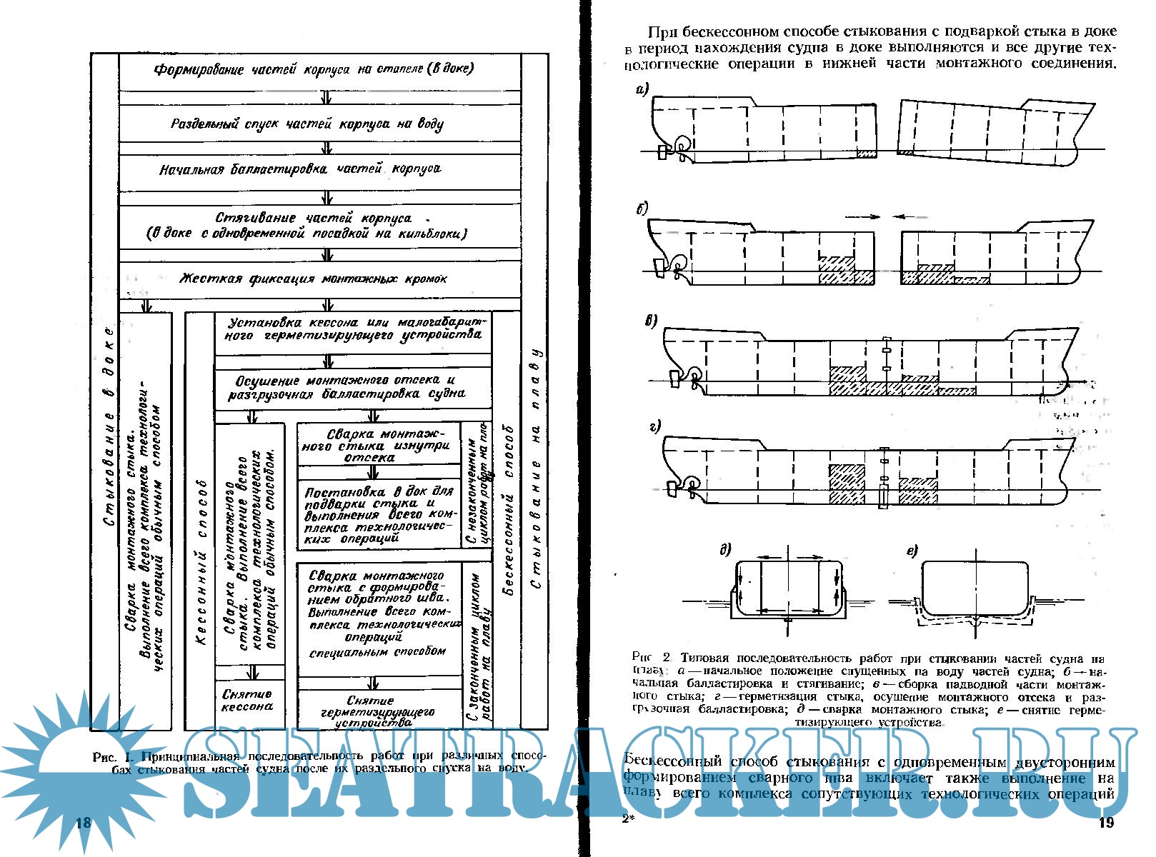 Описание: Изложены методы бескессонного и кессонного стыкования частей корпуса судна на плаву.