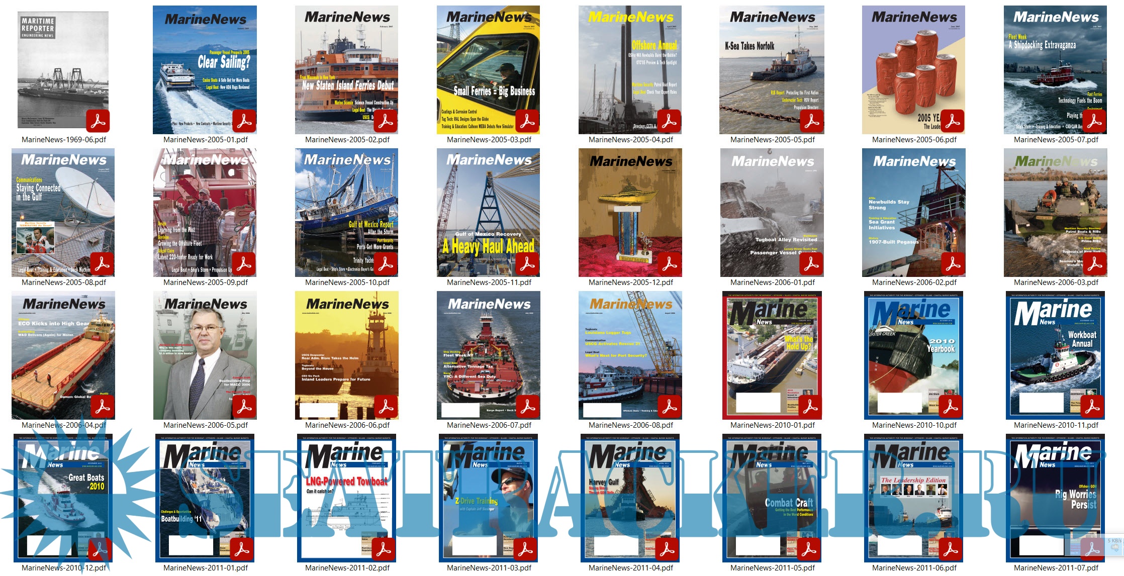 Year: 2005 - 2025 Language: english Author: MarineLink Publisher: MarineLink Format: PDF Quality: eBook Number of pages: >1000 Description: Like the workboat industry it serves, Marine News Magazine works hard, delivering the best news and editorial available for the North American shallow draft market. Tracing its history back to the turn of the century, Marine News is steeped in the tradition and history of the great companies that made our industry strong. Today, it remains the leading publication of the workboat Industry. Audited By BPA