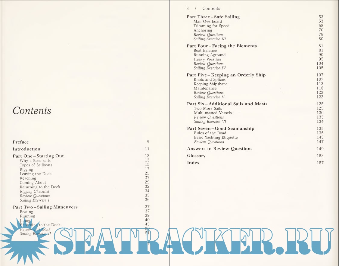 Description: A guide for the beginning sailor on safely maneuvering a sailboat includes discussions of rigging, anchoring, sailing etiquette, and dealing with heavy weather