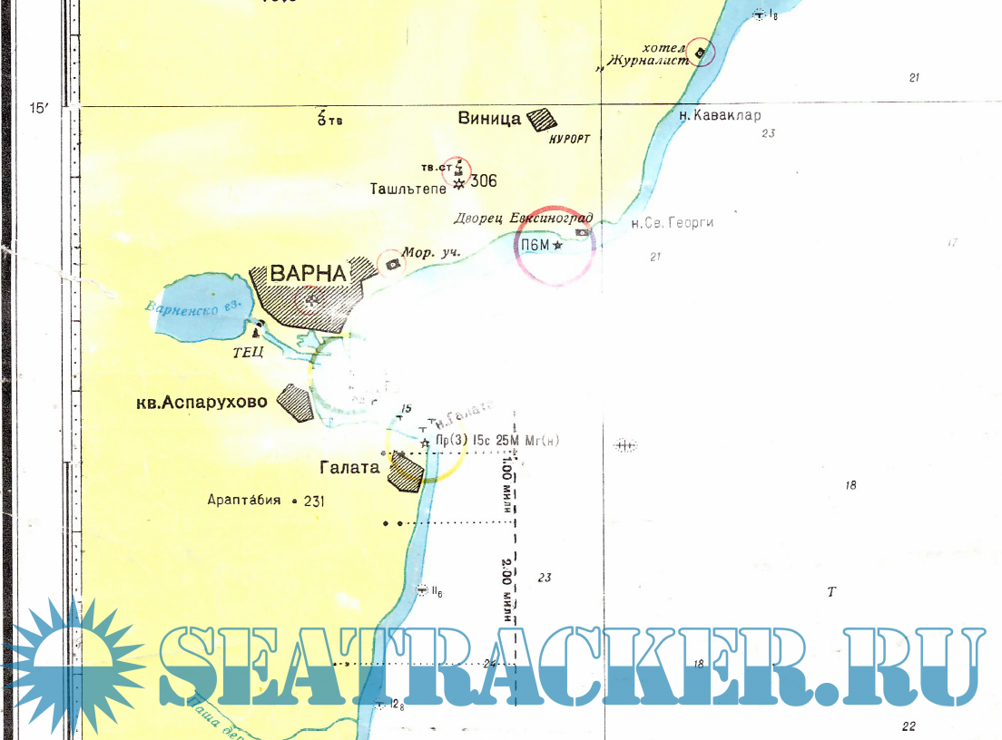 Description: This is a chart, part of the Bulgarian coast, used in Bulgarian marine academies.