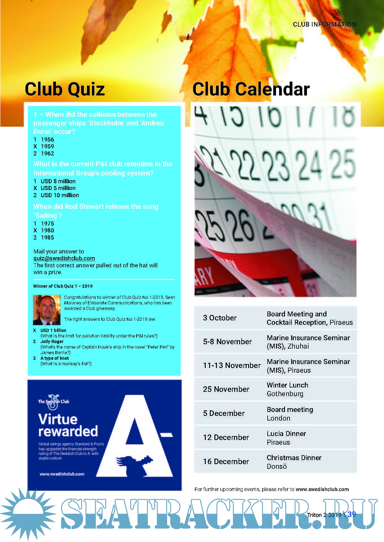 Description: The Swedish Club Triton is published three times a year and distributed free of charge. The Swedish Club Triton is an editorially independent newsletter and opinions expressed by external contributors are not necessarily those of The Swedish Club. Articles herein are not intended to provide legal advice and the Club does not accept responsibility for errors or omissions or their consequences.