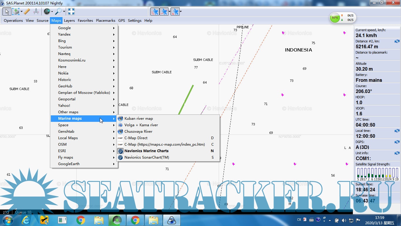 restart sasplanet and the two new menu about c-map appear on "marine map" section.