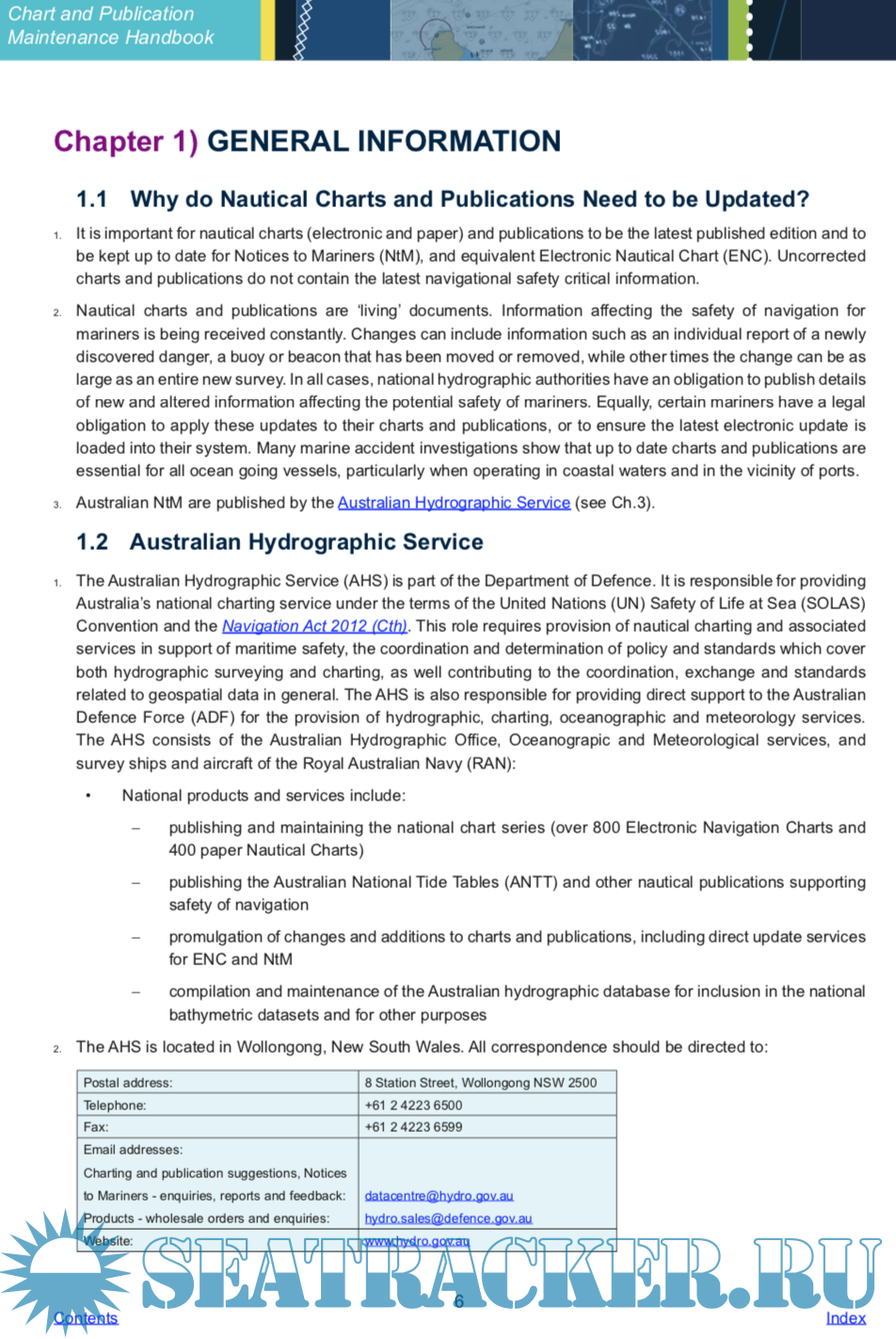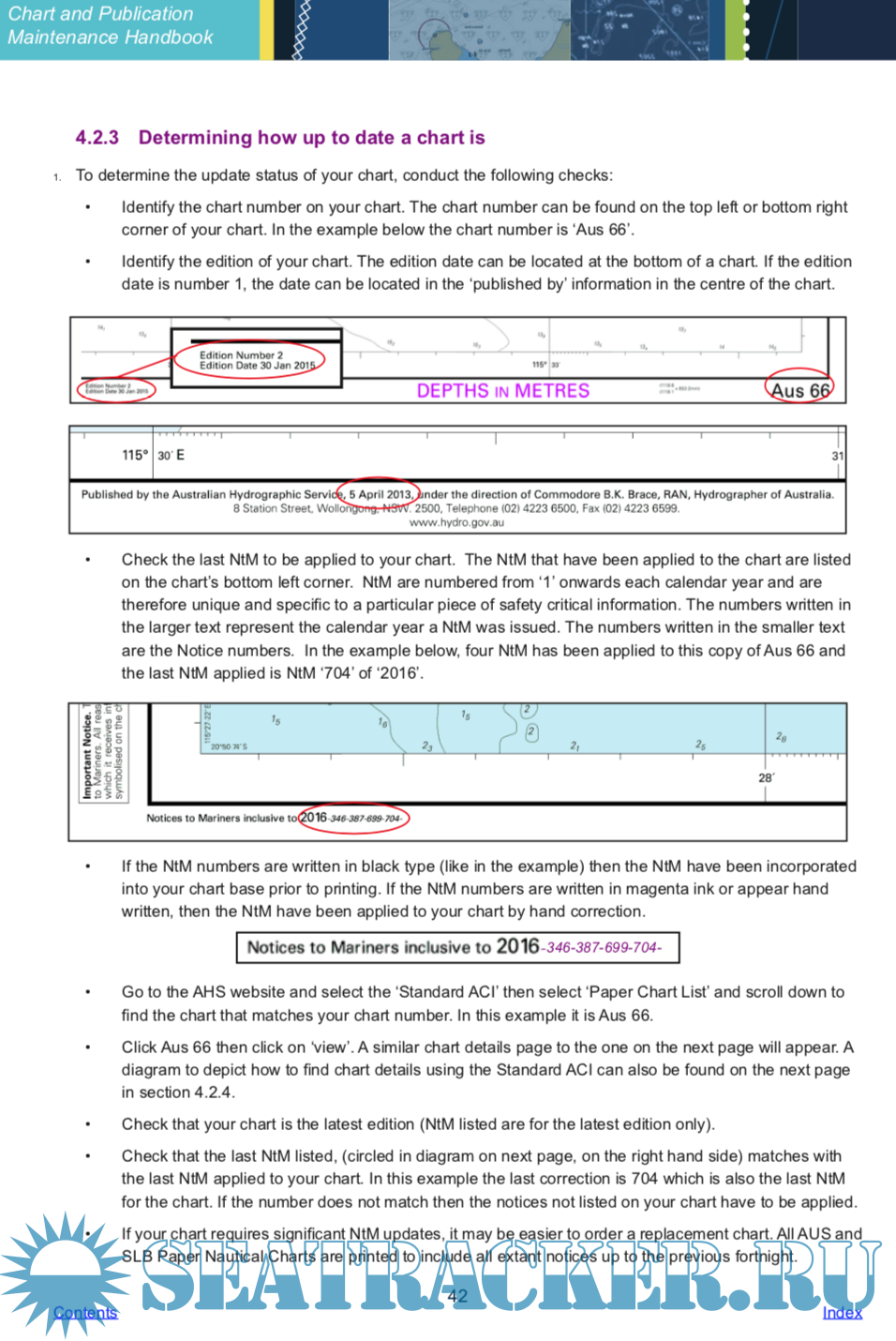 Description: The Australian Chart and Publication Maintenance Handbook provides information to assist mariners to maintain navigational chart outfits (both paper and electronic) and nautical publications. This book will also assist the mariner to maintain appropriate records suitable for an external inspection.
