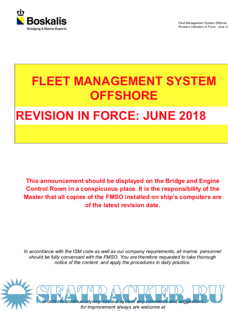 Description: The scope of the subject project is to provide to the Boskalis Offshore Fleet Management a new and harmonised Fleet Management System (FMS). This FMS has been the product of preparation within 2015 and active compilation within 2016.