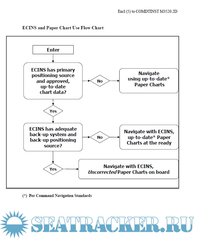 CH. 1. COMMANDING OFFICER/ OFFICER-IN-CHARGE CH. 2. GENERAL NAVIGATION REQUIREMENTS CH. 3. ADDITIONAL REQUIREMENTS FOR BOAT NAVIGATION CH. 4. ELECTRONIC NAVIGATION SYSTEMS CH. 5. ELECTRONIC CHART DATA CH. 6. CELESTIAL NAVIGATION CH. 7. NAVIGATION PLANNING AND BRIEFS CH. 8. CUTTER LOGS, RECORDS AND CHECKLISTS CH. 9. ANCHORING APPENDIX A. GLOSSARY OF TERMS APPENDIX B. LIST OF ACRONYMS B-1 ENCLOSURES (1) Navigation Plotting Symbols (2) Line Handling Commands (3) Cutter Navigation Teams. (4) Helm Commands (5) ECINS and Paper Chart Use Flow Chart (6) Guidance For Boat Forces Units Command Navigation Standards (7) Sample Getting Underway Checklist (8) Sample Entering Port/Approaching Restricted Waters Checklist
