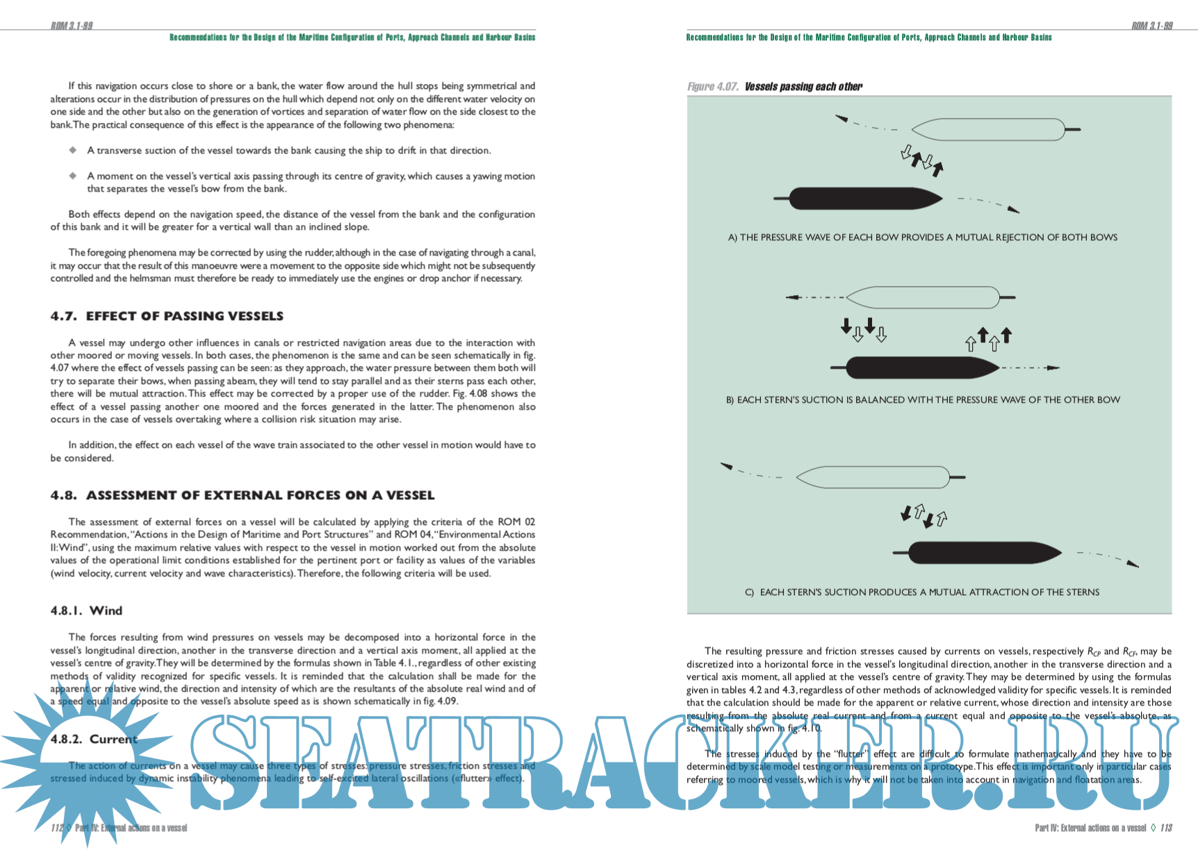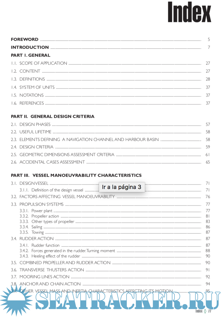 Year: 2007 Language: english Author: Carlos Sanchidrián et alli Genre: Reference book Publisher: Puertos del Estado (Spain) ISBN: 84-88975-39-2 Format: PDF Quality: eBook Pages count: 382 Description: With the publication of the «Recommendations for the Design of the Maritime Configuration of Ports, Approach Channels and Harbour Basins» (ROM 3.1-99), Puertos del Estado is materializing one of the Codes anticipated in 1987 when the ROM (Recommendations for Maritime Works) Programme was started by order of the former Directorate General for Ports and Coasts of the Ministry of Public Works and Urban Development. These new recommendations strengthen the concept of port operability as a basis for laying down design criteria for the maritime configuration of ports, their approach channels and harbour basins.Therefore, ROM 3.1- 99 does not just set mandatory maritime-port safety requirements but also seeks to guarantee minimum vessel navigation and manoeuvrability conditions in port waters and, finally, contribute to optimise the operating system of the different port areas attending to vessel traffic. With this in mind, the main purpose of this ROM 3.1-99 is to design and build the maritime configuration of ports, their approache channels and harbour basins.Whilst not constituting a Regulation for Maritime Operation of these areas, the ROM 3.1-99 may easily be applied to this end, taking into account the fact that the maritime configuration of ports has to guarantee the limit operating conditions to be established for different vessel manoeuvring in port waters. To this end, and within its scope of application, the ROM 3.1-99 echoes the major, methodological renewal effort that Puertos del Estado has addressed for the whole ROM Programme, one of whose supports is precisely to make safety requirements compatible with those of functionality.The design of the cross section and the layout of vessel navigation and manoeuvring areas in ports calls for the external actions envisaged during the service period of these areas to be taken into account as well as the predicted vessel traffic and types.This circumstance provides the content of this ROM 3.1-99 with a functional view more adaptable to the integral planning process of maritime-port construction. These Recommendations reflect this modernizing effort and make use of the whole rich flow of technology currently existing in the field of vessel manoeuvrability and of the interaction of such vessels with their physical environment (wind, waves and current).To this effect, a suitable path is opened for the rational use of probabilistic methods, simulation techniques and scale model testing for full characterization of the most frequent manoeuvring of vessels operating in ports. The use of the most advanced technology in the maritime-port field for designing approach channels and harbour basins allows the user of these Recommendations, whether a planner, designer or builder, to propose a calculation methodology adaptable to the targets and the available resources, without detriment to setting minimum general requirements. In this way, the ROM 3.1-99 is configured as an open instrument which proposes advanced calculation lines coherent with the general provisions of international organizations (IMO, IMMA, etc.) and committed to achieving a high standard of safety and operability in our port waters. Additional info: Spanish version here: