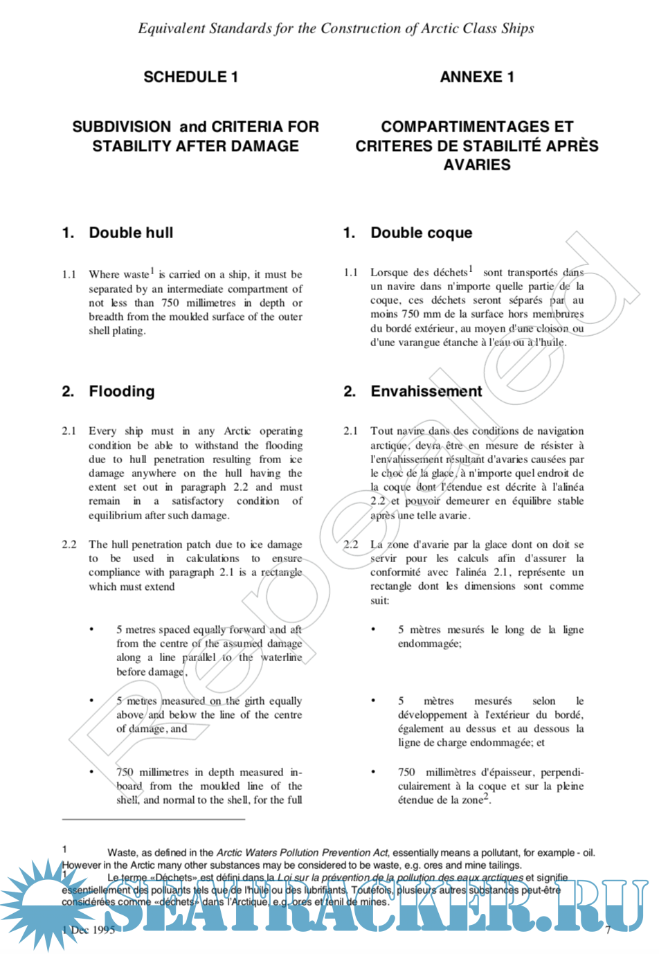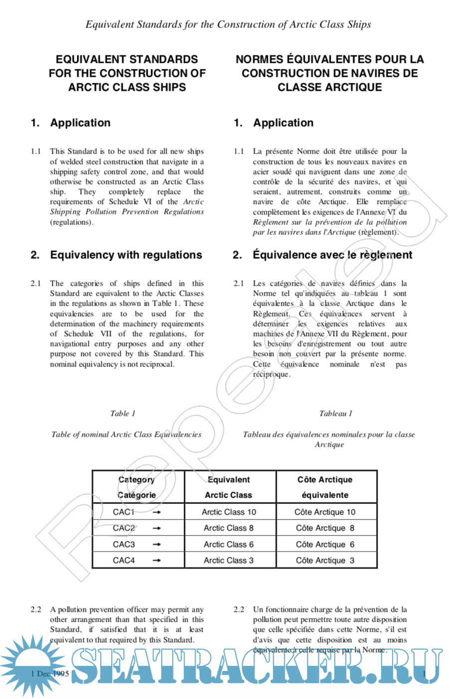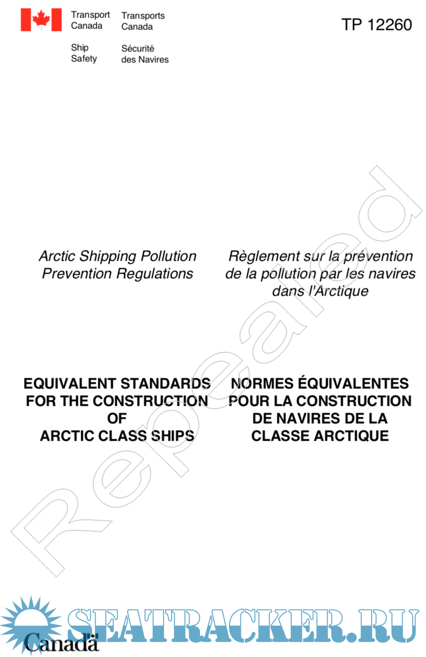 Description: This document describes equivalent structural re- quirements for Arctic Class ships as prescribed by the Arctic Shipping Pollution Prevention Regulations (Regulations). Section 11 of the Regulations permits this equivalency. The standard is also made under the authority of the Canada Shipping Act, Section 305.