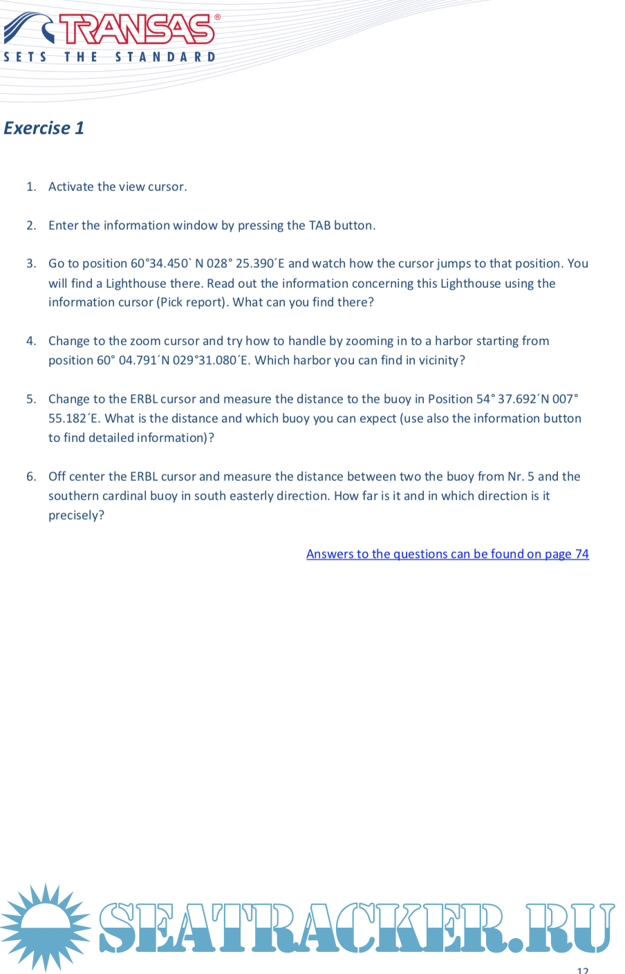 Those wishing to work with this material should have experience in performing chart and radar work and should be able to practice all usual tasks concerning standard navigational procedures and equipment. They should be familiar with standard computer, including elements such as windows, trackballs, etc.