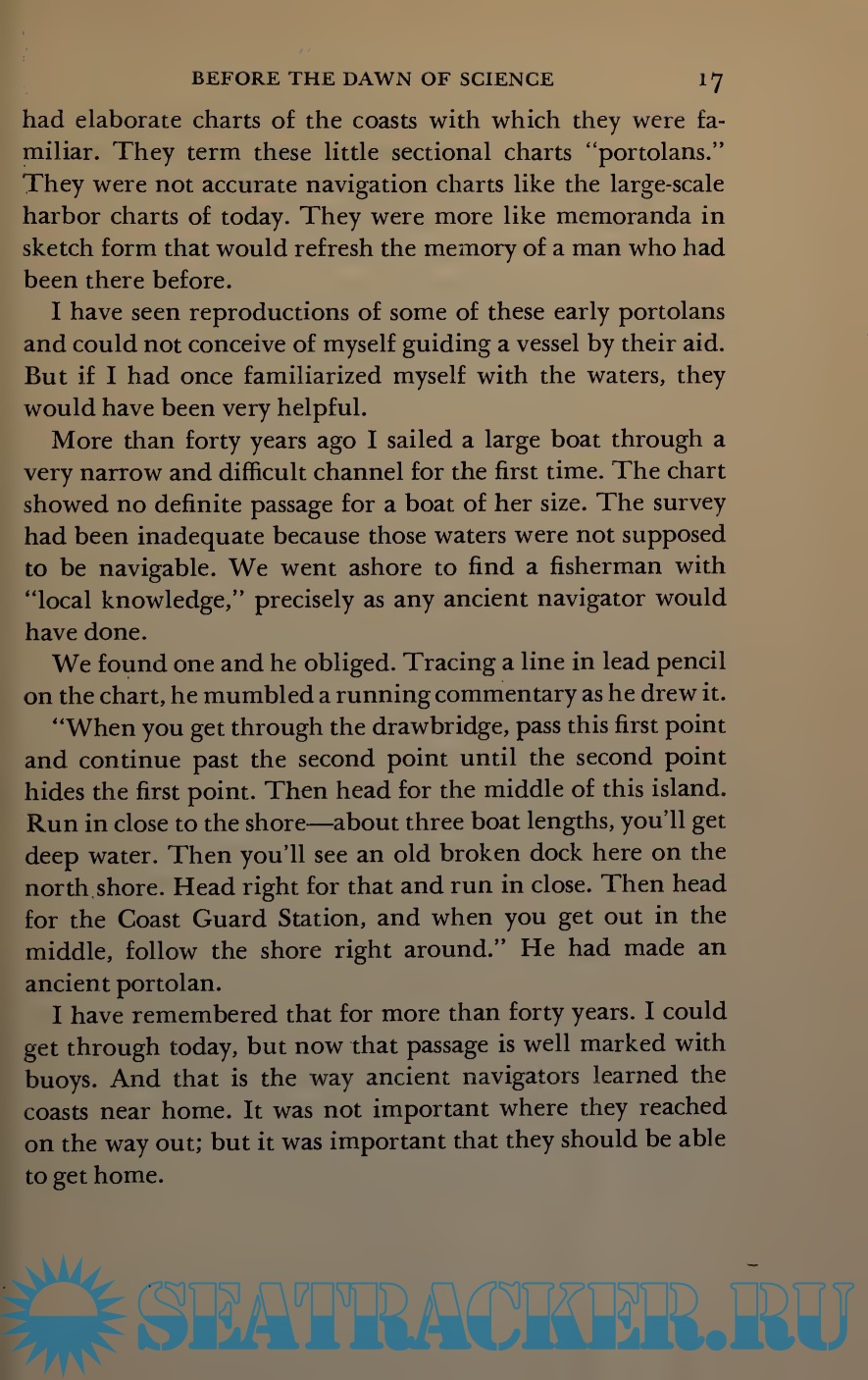 Description: This book is a story of the progress of the science of navigation from earliest times to the present. Today’s navigator can fix his position and plot his course to his destination with great accuracy. But this result has been achieved only after long centuries of ceaseless struggle.