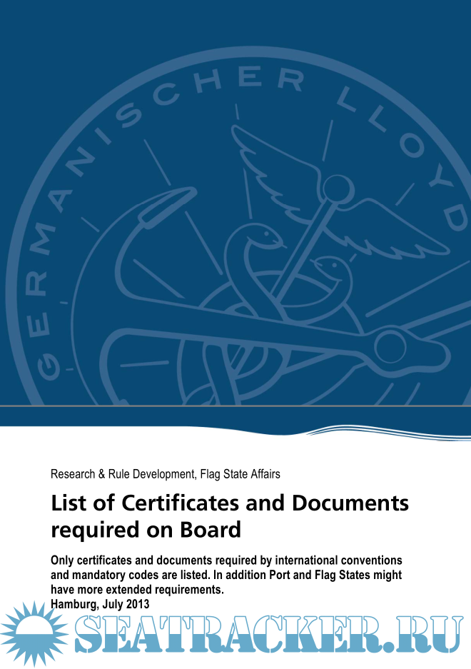 Year: 2013 Language: english Author: IMO & Germanischer Lloyd Genre: July, 2013 Publisher: Germanischer Lloyd Edition: 2013 Format: PDF Quality: eBook Description: The list contains only the certificates and documents that are required under IMO instruments and it does not include certificates or documents required by other international organizations or governmental authorities.