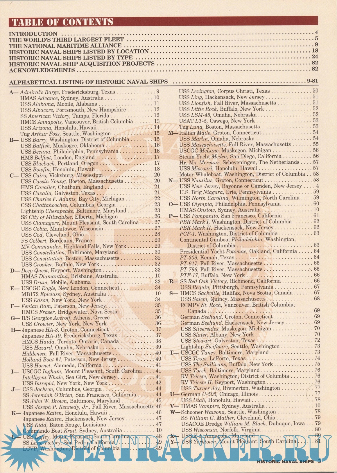 The main content of the publication is starting with the introductory chapter providing some general overview of the HNSA and the alphabetical listing of the vessels addressed in the pages of the volume. The very first naval warships selected for preservation and further exhibition in America were the USS Oregon and USS Constitution.