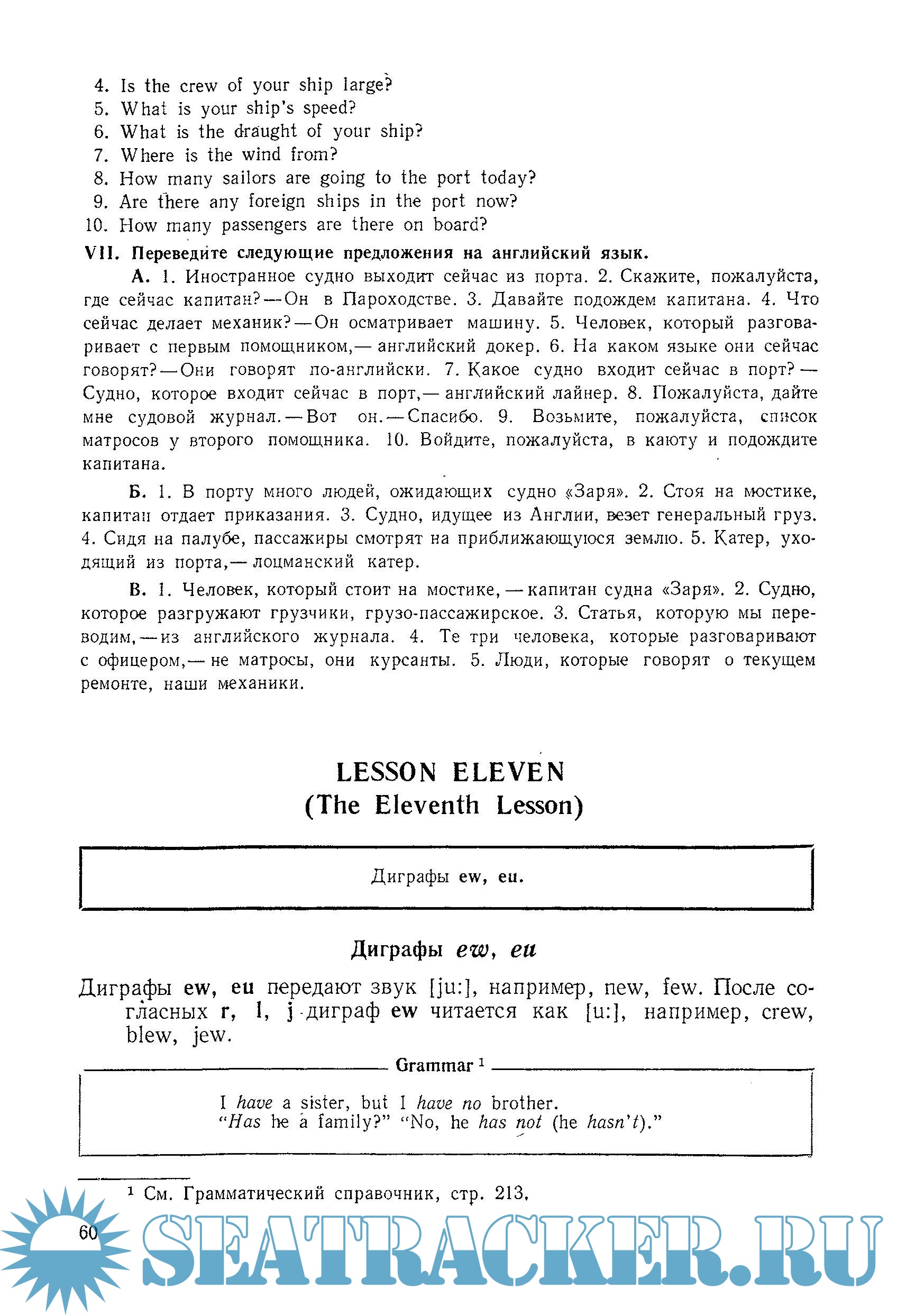 Данный курс английского языка предназначен для лиц, начинающих изучать английский язык в морских училищах. Он может быть использован и продолжающими изучать английский язык. В этом случае в целях более прочного закрепления морской лексики и систематизации грамматического материала рекомендуется пройти более ускоренным темпом материал первых уроков, начав с тех, которые соответствуют уровню знаний учащихся.