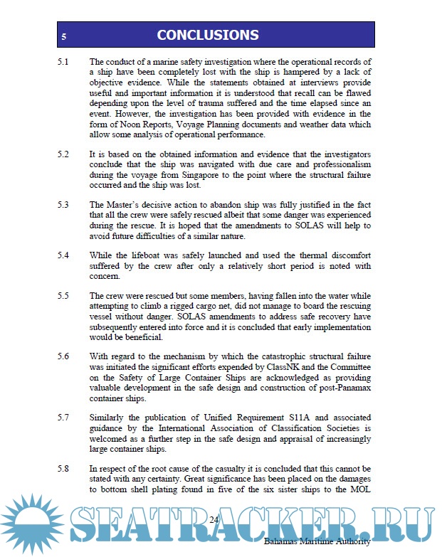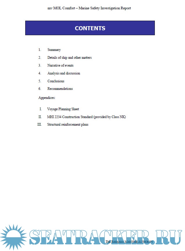 Description: Report of the investigation into the sinking of the “MOL Comfort” in the Indian Ocean