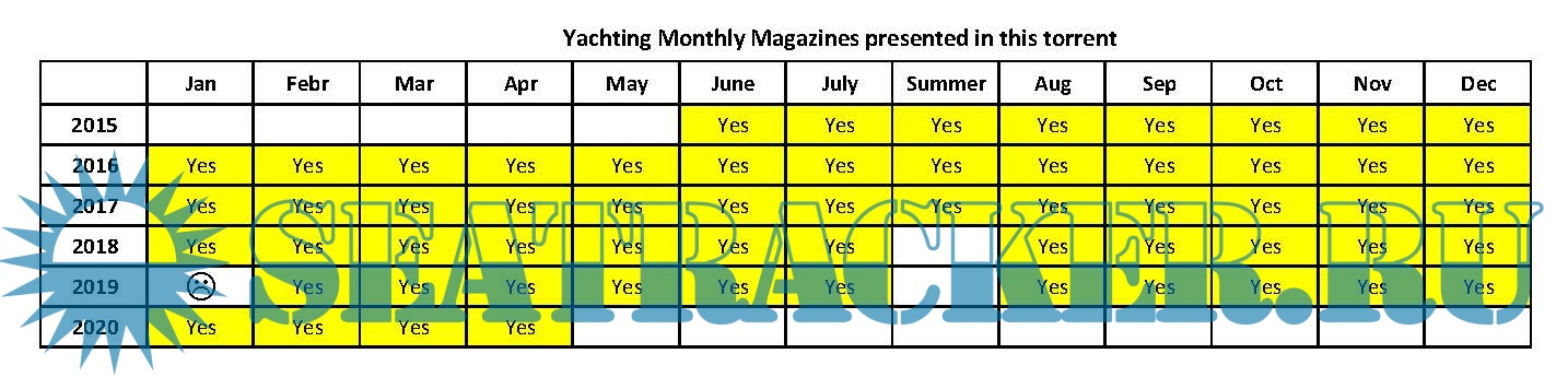 Year: 2015-2020 Language: english Author: Theo Stocker Genre: Periodical (magazine) Publisher: TI Media Limited Format: PDF Quality: Photo of pages Pages count: 100-124 Description: Yachting Monthly is at the heart of the British yachting market and is for people who actively sail their boats – whether cruising across the channel, around the coast or further afield in blue waters. It provides an entertaining mix of vital information for cruising yachtsmen with all levels of experience, which maximises their enjoyment, increases their skills and gives them the confidence to broaden their horizons.
