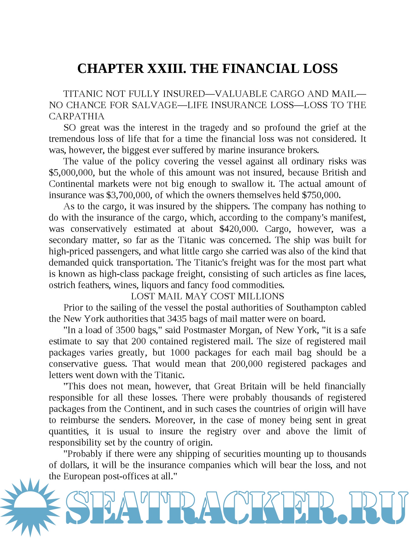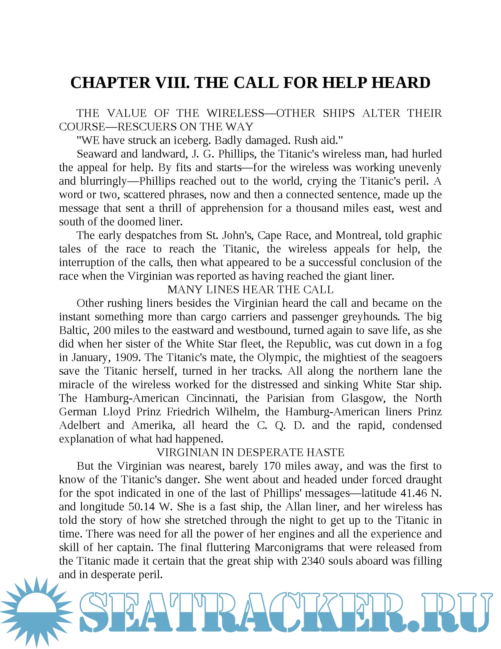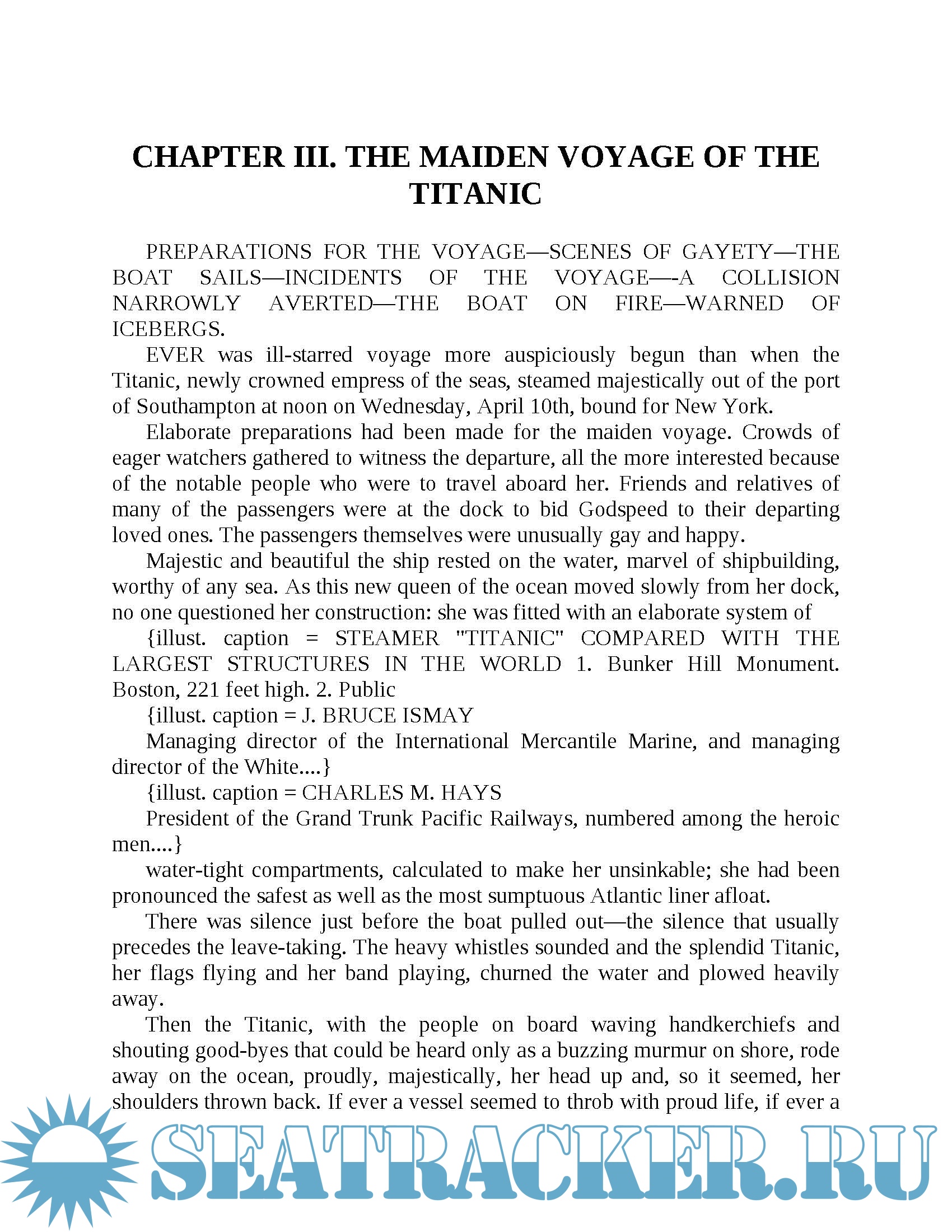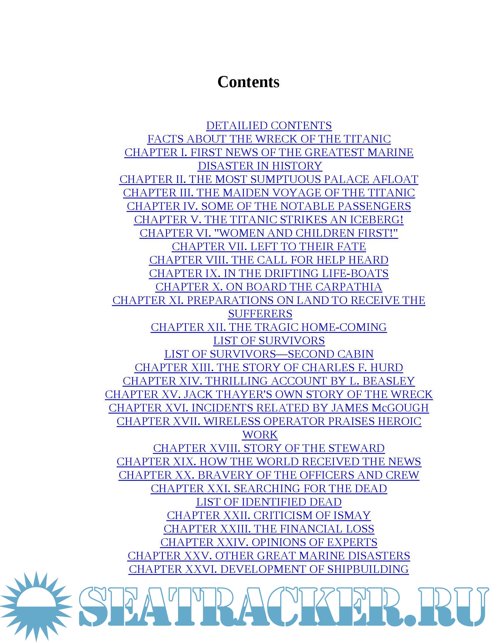 The sinking of the Titanic and Great Sea Disasters is an exciting collection of first-hand stories describing the catastrophe of Titanic's maiden voyage as told by its survivors shortly after the ship sank. Originally written and published in 1912, Logan Marshall's book was the first attempt to solve the mystery of the accident and relieve the heartache which it stirred internationally. Marshall narrates the personal stories of Titanic's passengers before, during and after the sinking of the ill-fated ship.