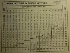 Mean Latitude to Middle Latitude Correction Table