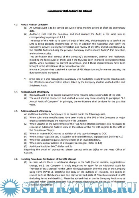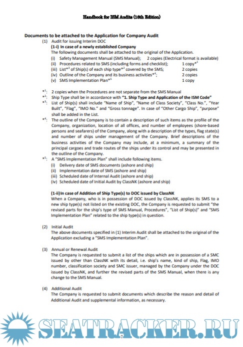Description: ClassNK conducts the ISM Code Audits and issues the Certificates in accordance with the Rules established by ClassNK. Any ship management company must structure a SMS, which meets the requirements of the ISM Code and it should be documented, implemented and maintained. The company should then obtain a DOC for the main office and SMC(s) for their Ship(s), upon satisfactory completion of Audits conducted by the Flag Administration, otherwise the Company is not legally able to engage in any International Shipping business.