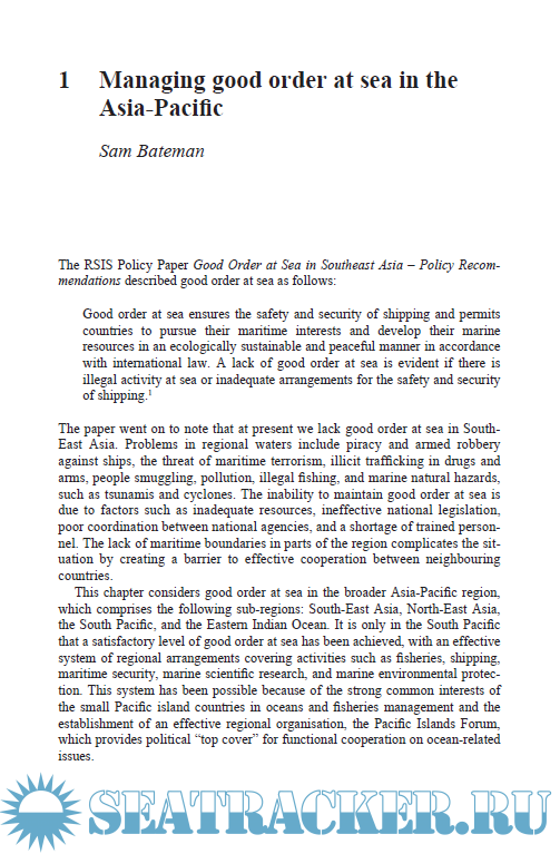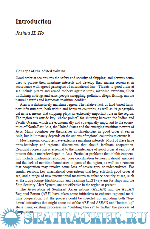 Year: 2012 Language: english Author: Edited by Joshua Ho, Sam Bateman Genre: Handbook Publisher: Routledge ISBN: 9780415516990 Format: PDF Quality: eBook Pages count: 337 Description: Maritime issues are particularly important for Asian countries, where there is a high reliance on shipping routes for international trade, many difficult disputes over maritime boundaries, and the prospect of increasing tensions where maritime power might play a significant role. This book uses contributions by 17 experts to build a comprehensive survey of the maritime issues affecting Asia. It discusses the issues overall, goes on to examine the issues from the perspective of each of 14 key countries, and concludes by assessing the prospects for resolving common problems in order to preserve good order at sea.
