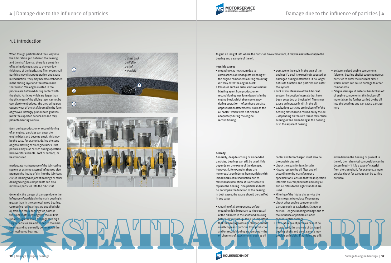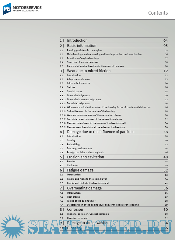 Description: This brochure provides an overview of the different types of damage in engine half shell bearings and thrust washers. It also supports experts with diagnostics and determining the cause of damage.