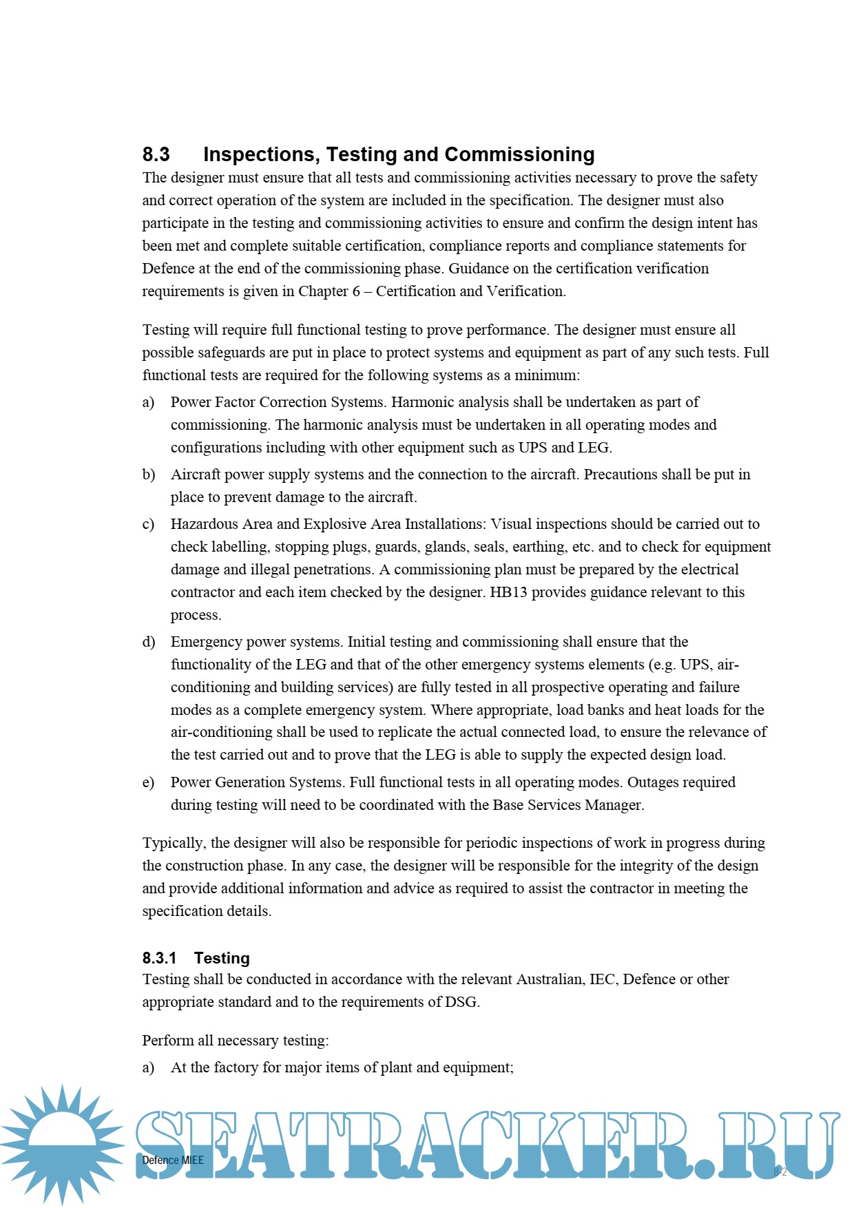Year: 2011 Language: english Author: Department of Defence Genre: Manual Publisher: Department of Defence Format: PDF Quality: eBook Pages count: 408 Description: The Manual of lnfiastructure Engineering - Electrical (MIEE) is the primary Defence policy document when determining electrical engineering requirements for Defence facilities and infrastructure. Its provisions are mandatory.