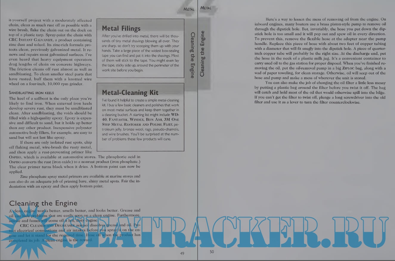 Year: 2000 Language: english Author: William M. Burr Jr. Genre: Handbook Publisher: International Marine Edition: First ISBN: B00968GU2Y Format: PDF Quality: Scanned pages Pages count: 181 Description: Most boaters spend too much time and money trying to find cleaning and maintenance products that can keep their vessels in top-notch shape. Bill Burr's Boat Maintenance ends those costly searches by providing this comprehensive guide to the techniques and products that can preserve and protect your boat year after year. This is the first book to combine practical, how-to instructions with objective product recommendations. Combining Burr's varied experience in boating and chemical engineering with the advice of marine professionals, Boat Maintenance shows you how to clean and maintain fiberglass, wood, metal, fabric, and plastics. You'll also learn how to select and apply paints, varnishes, and other coatings, in addition to sealants and adhesives. With Boat Maintenance, you get Expert advice on more than 150 brand-name products Quick answers to typical boat problems Money-saving tips on using low-cost generic substitutes Weekly, monthly, and seasonal preventive maintenance schedules Data on the chemical components and environmental dangers of products Safety tips on proper product handling Additional info: