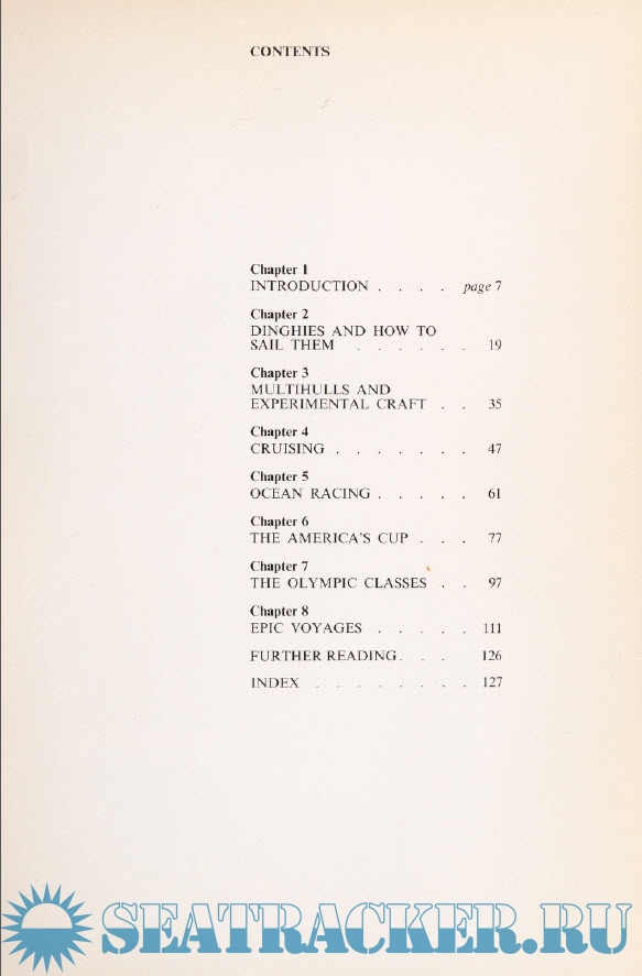 For those who are just getting involved in the sport the section on cruising deals with such essentials as what to look for when buying a boat, how to make sure that there is enough food on board to satisfy the hearty appetites built up during a day’s sailing, repairs, naviga- tion and most important of all—safety.