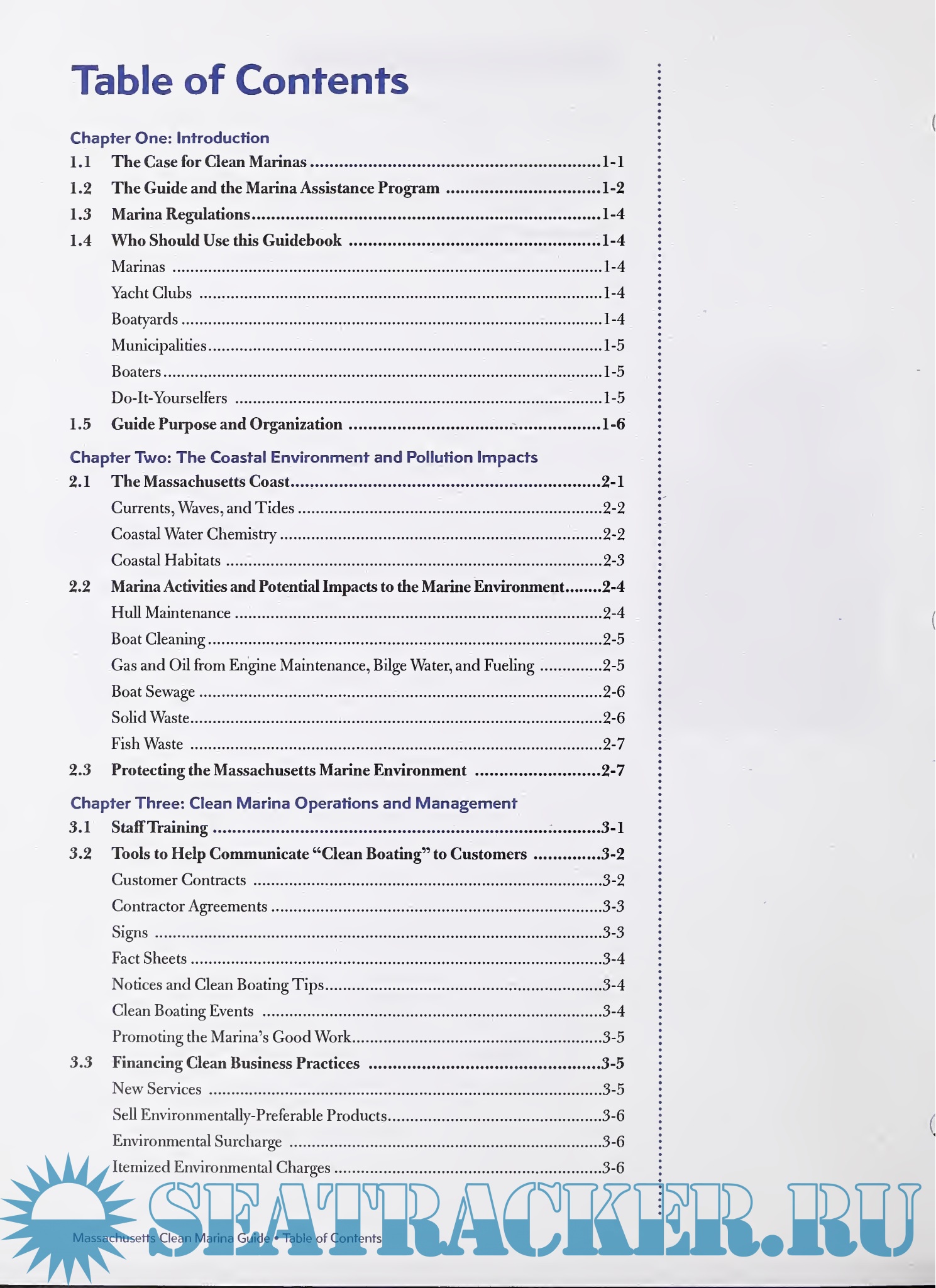 The Massachusetts Clean Marina Guide contains many useful recommendations that have been developed in conjunction with local and national professionals involved in the operation of marinas and boat maintenance. We hope you find this Guide informative and useful. Please share the information with others and feel free to distribute the fact sheets included with the Guide.