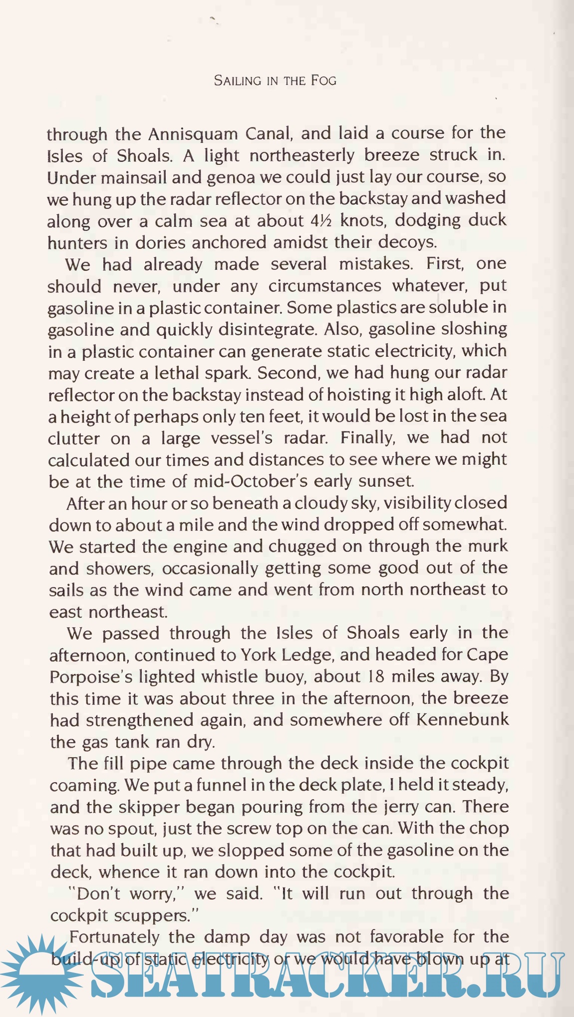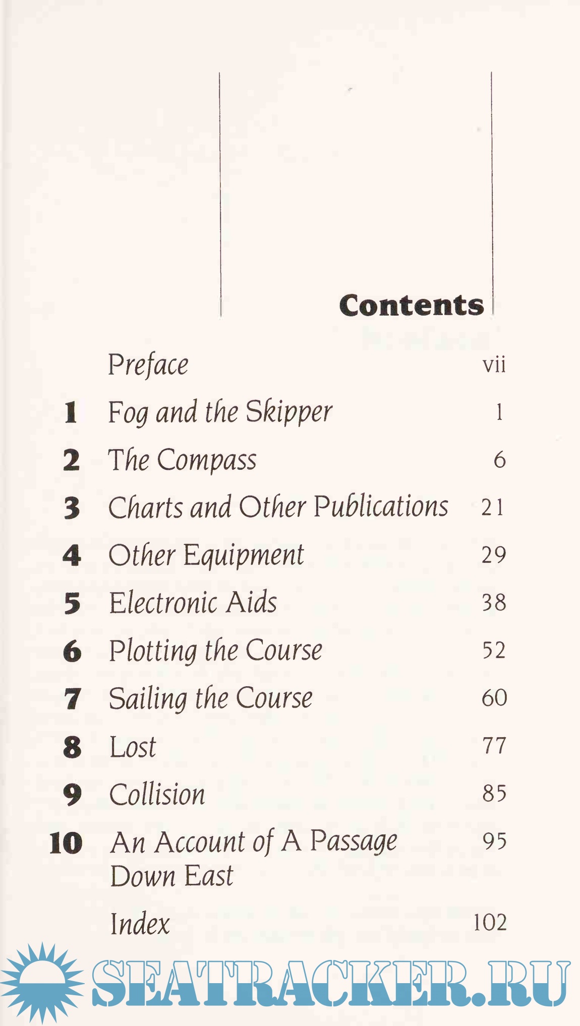 Duncan tells you everything you need to know about dead reckoning, compass adjusting, reading the chart, using electronic aids, keeping a log, avoiding collisions, and finding a mark under sail or power. But he does more than that. He conveys the sense and feel as well as the mechanics of making a run in the fog — the fascination, the dreariness, the apprehension, and the satisfaction when a buoy is raised or a safe and comfortable anchorage is reached.