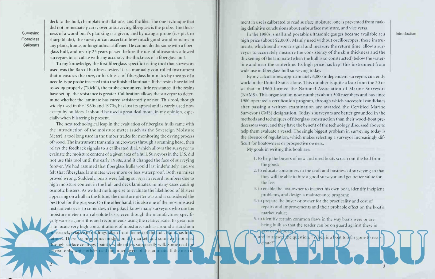 Having a used boat surveyed is a critical prelude to buying it. Yet a professional survey is expensive--several hundred dollars. Surveying Fiberglass Sailboats will enable you to conduct your own surveys while narrowing the field, then monitor a professional surveyor's performance when selecting your target boat.