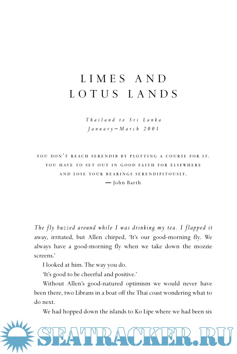 Their journey unfolds into one of discovery. It's about living on water, diving in the world's best reefs, eating the freshest sashimi ever, visiting places that don't make it into the travel guides and letting go of those potent markers of personal identity such as work and material possessions. It's about learning to sail, learning to be self-sufficient and almost learning to be brave. It's about being bored, exhausted and utterly terrified, and finding out that the good life is not always where we expect to find it.