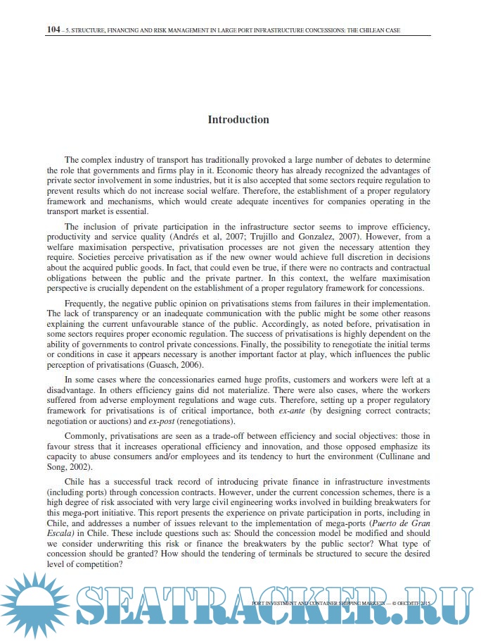 The report benefits from a case study of Chile, where plans for a major expansion of port capacity in the central part of the country are well advanced. Chile provides the detail for an examination of factors critical to decisions on container port investments anywhere: demand forecasts, change in liner shipping markets, hinterland transport capacity, competition between container terminals, and the framework for financing of investment.