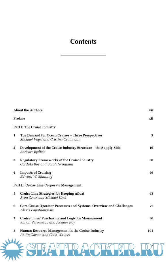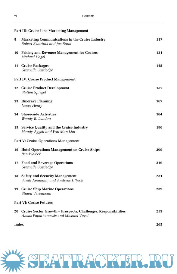 Year: 2012 Language: english Author: Vogel, Michael et al. Genre: Textbook Publisher: CAB International Edition: First ISBN: 978-1845938451 Format: PDF Quality: Scanned pages Pages count: 292 Description: After a constant growth in the latest 40 years, the worldwide ocean cruise sector has become a significant economic factor and a highly demanded employer. In the way it combines social, technological and natural systems to form its products, cruise tourism is an increasingly attractive area of study particularly with regards to the managerial challenges posed by the interaction of these systems. This book brings together industry know-how, managerial experience and academic rigor to cover some of the most important and interesting managerial challenges associated with ocean cruises.