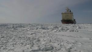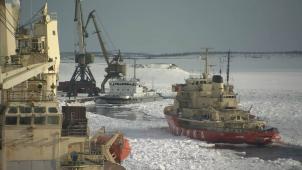 Der Wind hat die Schollen zu meterhohen Packeis-Barrieren zusammen geschoben. Obwohl die Maschinen des Polarfrachters „Iwan Papanin“ mit 17.000 PS arbeiten, kommt das Schiff kaum noch voran. Für Kapitän Woluschew wird es immer schwieriger, einen Weg durch die fast geschlossene Eisdecke zu finden. Ohne einen der acht Eisbrecher der russischen Atomeisbrecher-Flotte würde sein Schiff stecken bleiben Der Eisbrecher muss so nah wie möglich an die „Iwan Papanin“ herankommen, um das Eis um den Frachter herum aufzubrechen. Eine diffiziles Manöver, denn der 75.000 PS starke Eisbrecher darf auf keinen Fall mit dem Frachter kollidieren. Dieser läuft nämlich ebenfalls bei voller Motorenleistung weiter – eine falsche Bewegung, und der Frachter rammt das vor ihm agierende schwimmende nukleare Kraftwerk...