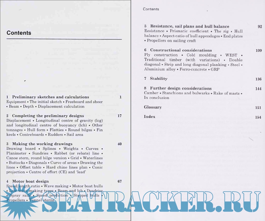 Year: 2003 Language: english Author: John Teale Genre: Handbook Publisher: Sheridan House Edition: Third ISBN: 1-57409-157-3 Format: PDF Quality: Scanned pages Pages count: 162 Description: This book will take you step-by-step through the stages of designing both power and sailing boats, explaining the reasons behind the procedures and using sketches and reproductions of working drawings to facilitate learning.