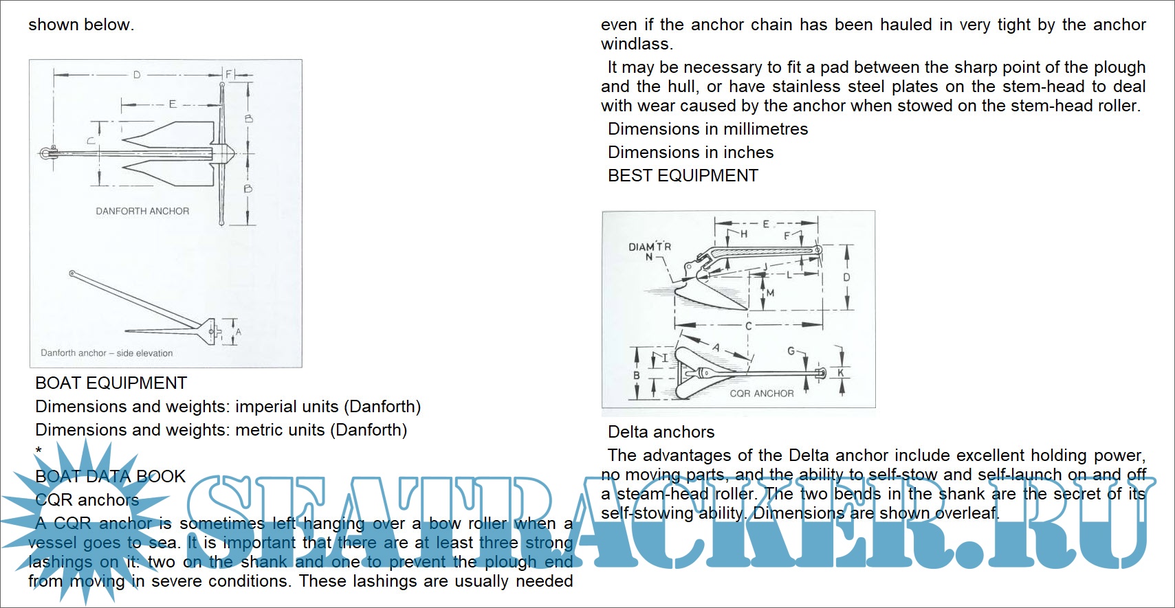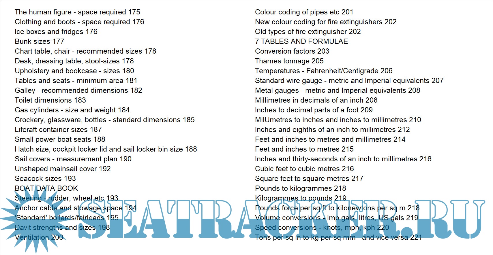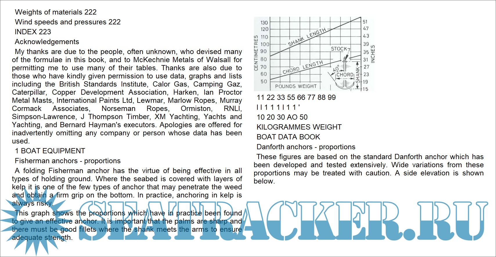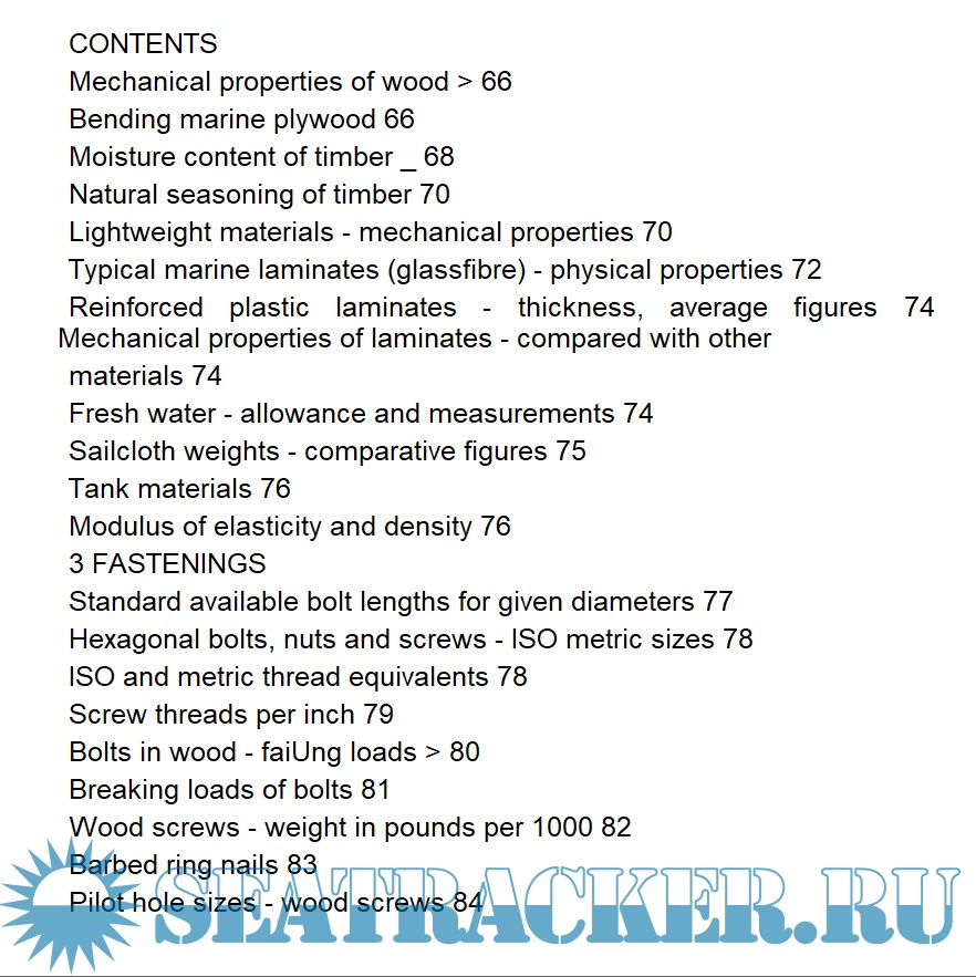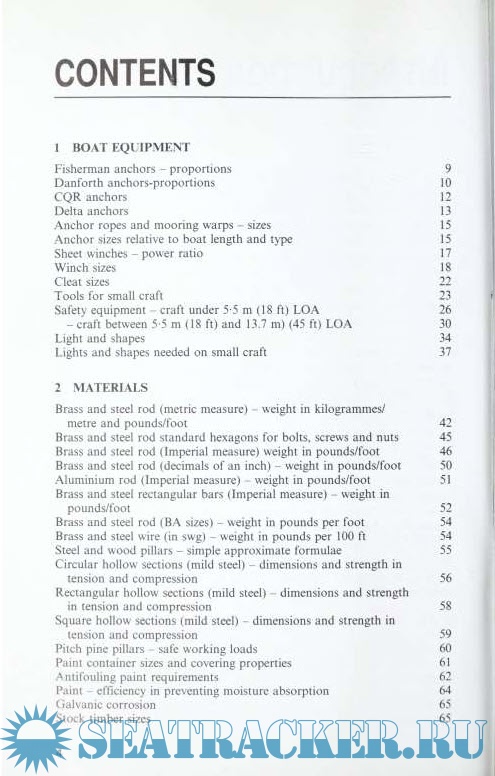 Year: 2004 Language: english Author: Ian Nicolson Genre: Guide Publisher: Sheridan House Edition: Fifth Edition Format: EPUB Quality: eBook Pages count: 287 Description: This book is for owners, crew, boatbuyers, charterers, chandlers, builders, repairers, designers, draughtsmen and students. In fact, for anyone concerned with boats and ships. One of its most valuable uses is saving time and trouble when specifying anything. By simply quoting a page anyone can order equipment without having to look up the correct size and write out lengthy details. An owner can phone a marina or chandler and simply say: Tut a new anchor on my boat. Size as specified in Boat Data Book\ Designers can reduce long lists of rigging to: 'As detailed in Boat Data Book, page 115, column for yachts between 9 m and 11 m\ Anyone buying a boat can check the standard of its equipment by referring to the hsts in this book. There is a widespread practice of fitting boats with totally inadequate anchors, chain, winches and so on. Many second-hand boats offered for sale are found to have inadequate safety gear, and much of what is on board is often out of date. Reference to pages 26 to 35 will show what is needed. When designing or acquiring a boat it is important to check dimensions of berths, galley top heights and so on. There is a tendency also to save on building costs by fitting furniture which is under-size and as a result inconvenient, besides being uncomfortable to use. Chapter 6 on Design gives many basic dimensions, standard, recommended minimum sizes and so on.
